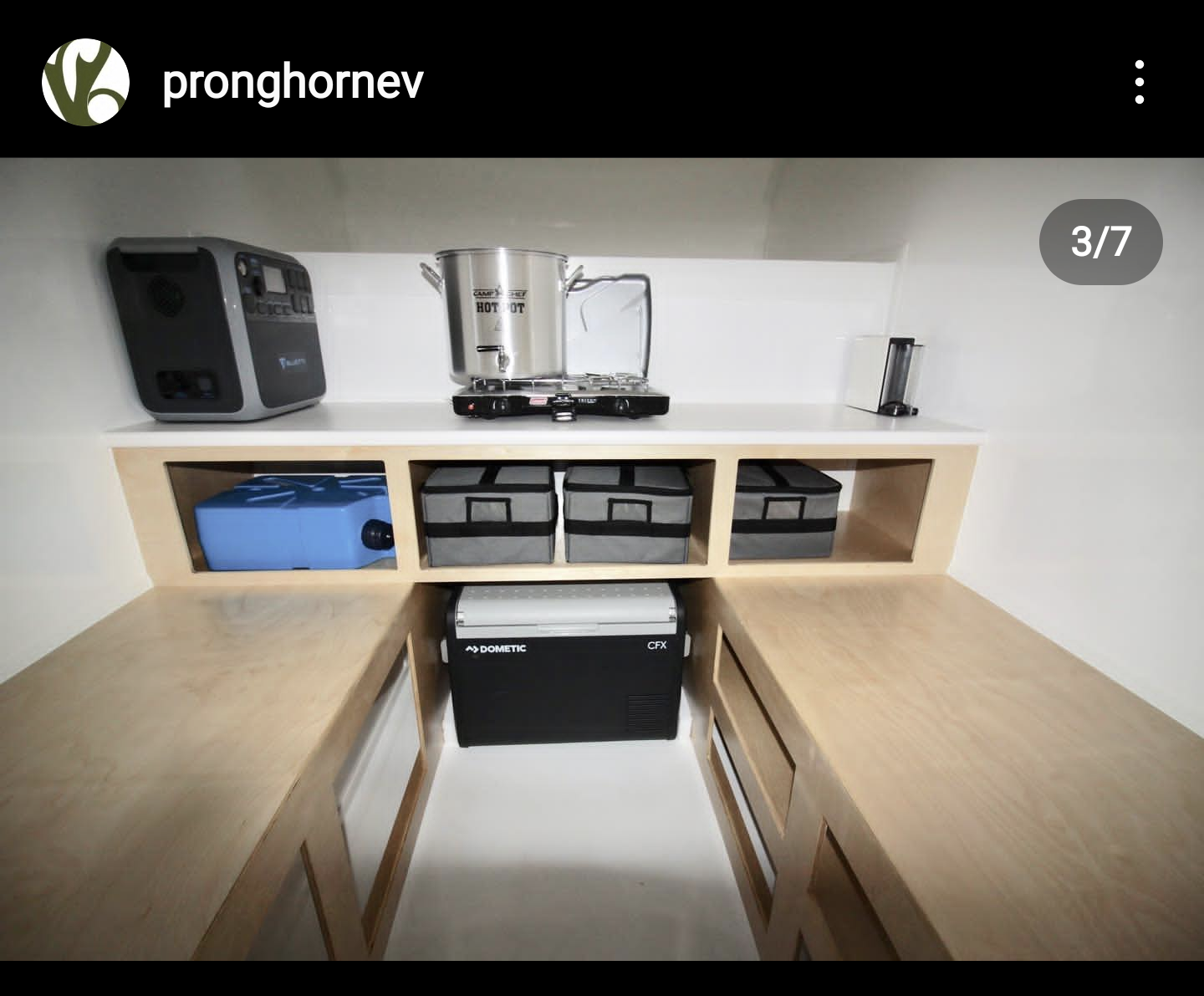 Thought behind camper: Designed to be as low profile as possible to increase trail performance. Therefore the interior height is lower than conventional campers(6ft). I sleep east-west across the bench seating and use the alcove for gear storage(fits rifle cases perfectly). The 50mm thick walls with frp extrusions provide a thermal transfer free shell. With the diesel heater installed the camper will be true 4season (no more freezing in a tent on those late season snowy hunting trips).