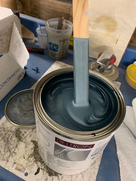 Well, I jumped the gun a tad. The body for the Jeepster is still at the paint shop, but is supposed to be sprayed tomorrow. The interior, firewall and underside have been shot, and they look great. You'll notice that the color is almost identical to the original Jeepster blue metallic, but slightly more blue. It's actually an AC Cobra color that we mixed up using original AC color chips.