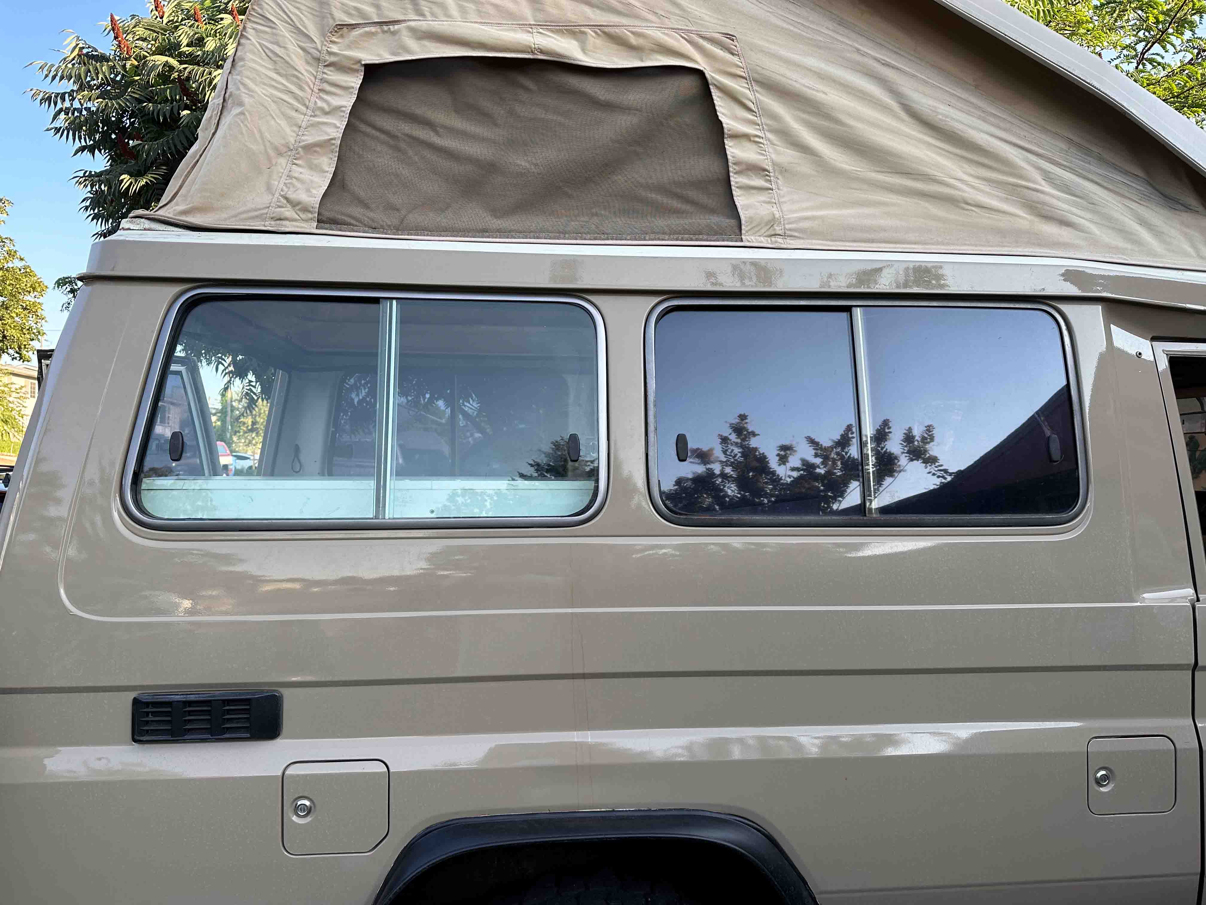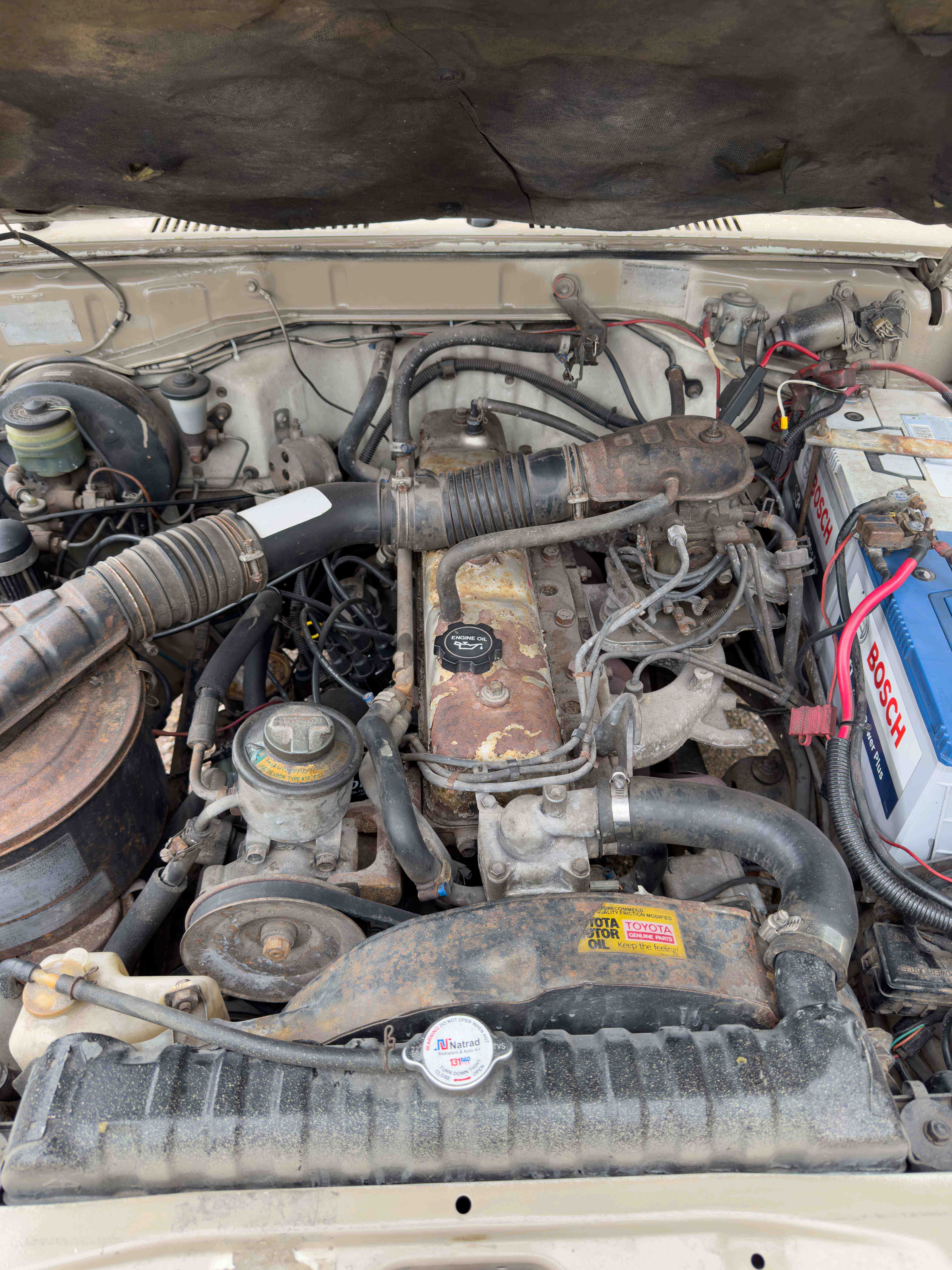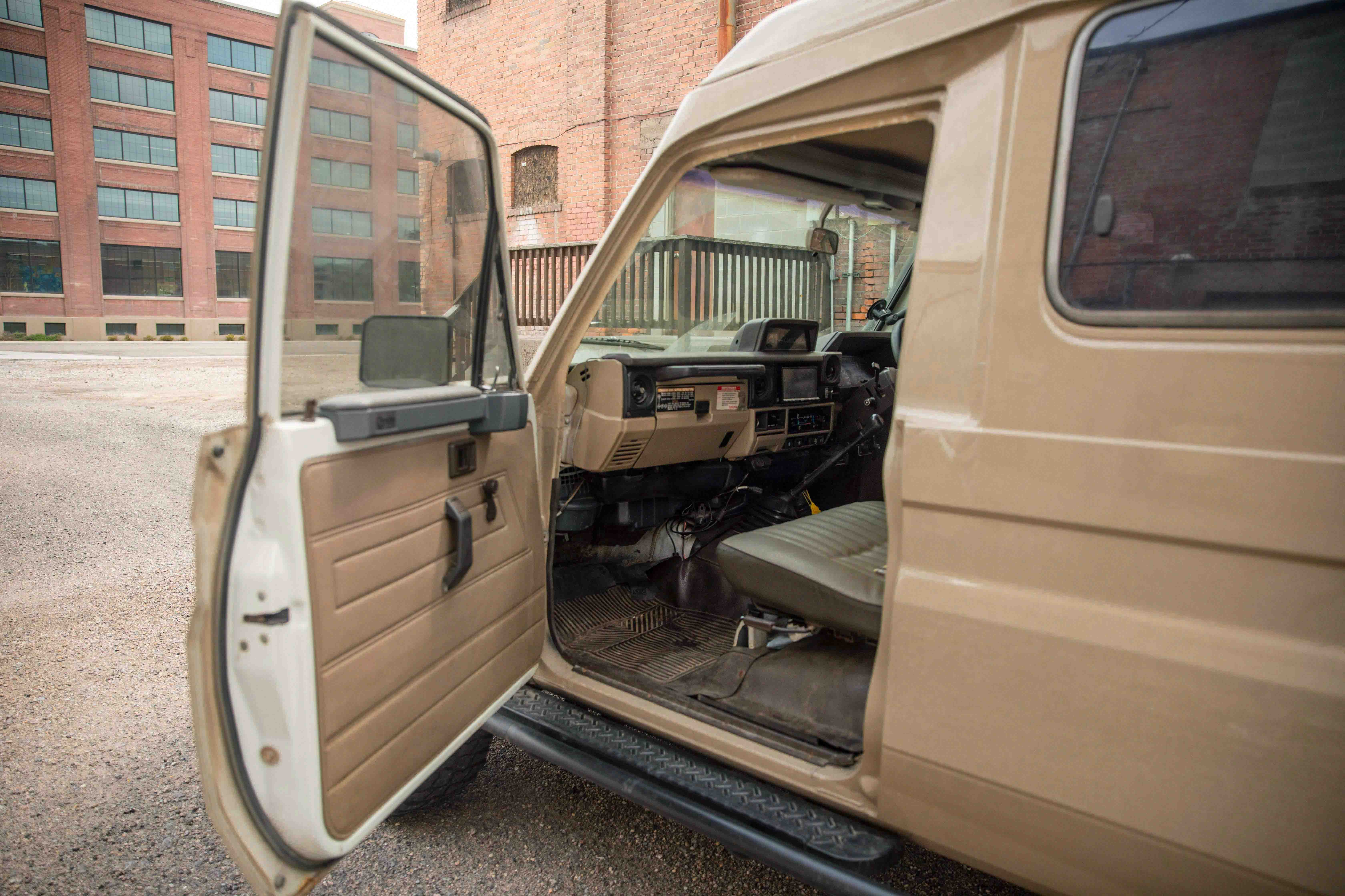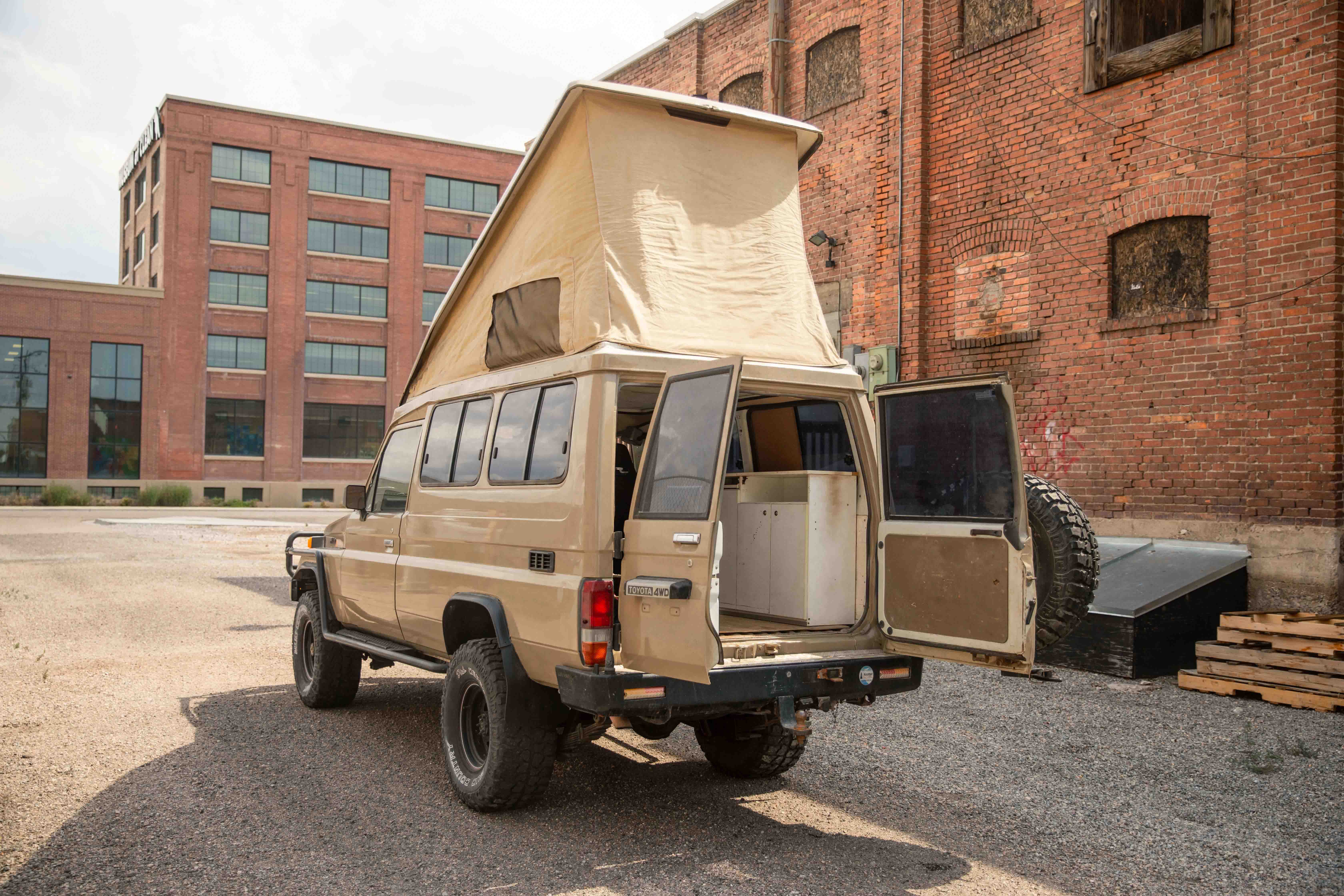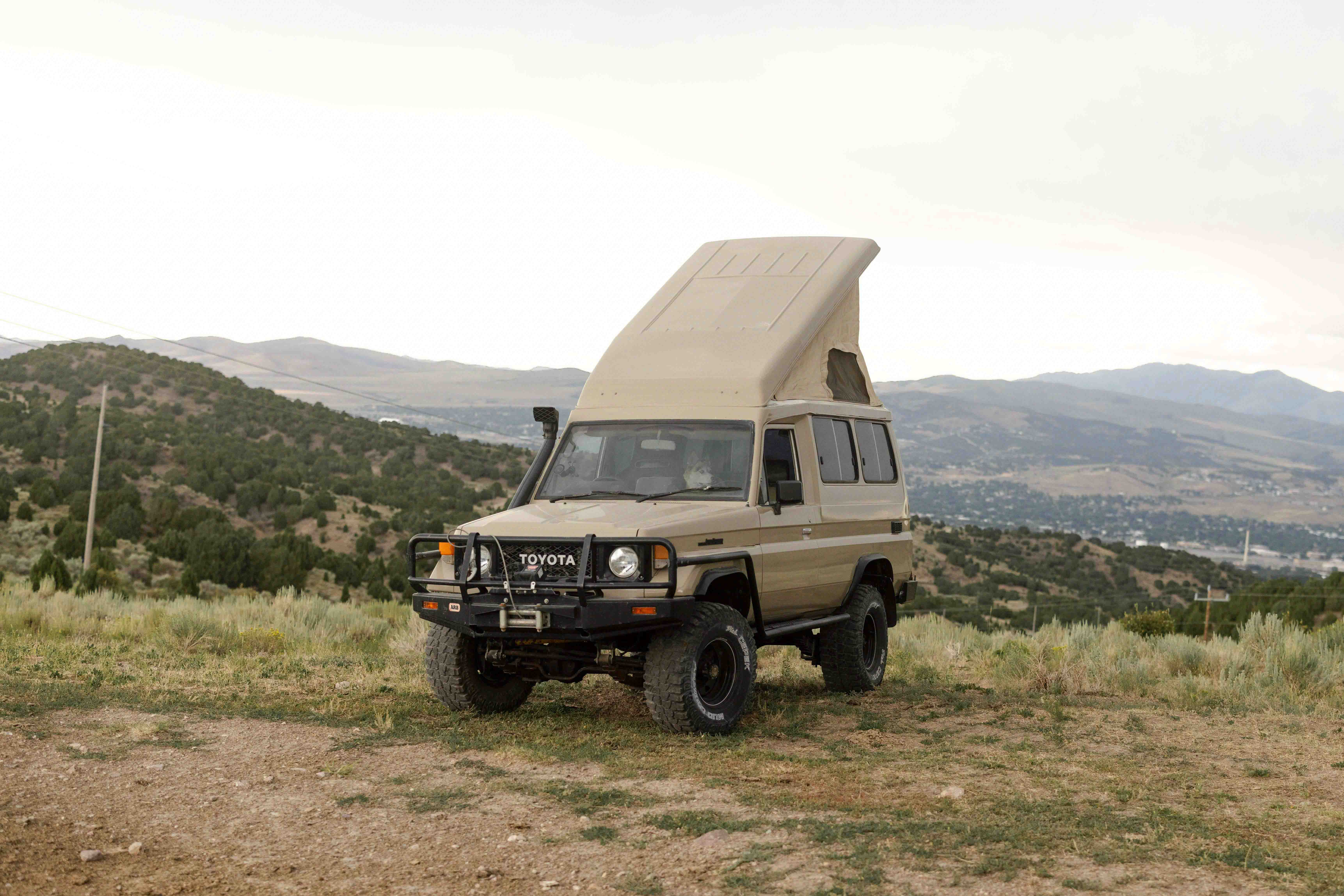 The 3F is an absolute blast to drive and honestly is far more suitable than I thought it would be for a Troopy. Cruises at 70 under 2500 rpm and runs like a top. Has a lot of crossover with the 3F-E in the FJ62 so parts have been relatively easy to come by. The suspension is stiff since it has a heavy duty leaf pack, but it's ready to carry you and all your gear down the Pan-American. Truck has pretty much zero rust on the frame/undercarriage. The body has blemishes and signs of use with 3 areas where rust is present - passenger side rocker panel, passenger's side rain gutter above rear panel window, and driver's side rear quarter panel behind bumper guard. All would eventually need attention, but other than that it looks fantastic. Original paint was white and it has been resprayed in Sandy Taupe. The pop top is not new, but is in great shape with integrated reading lights in four locations and all sleeping platform planks. Comes with 4 bench seats (not sure if they're the original, but they would need to be restored) and extra driver/passenger seats.