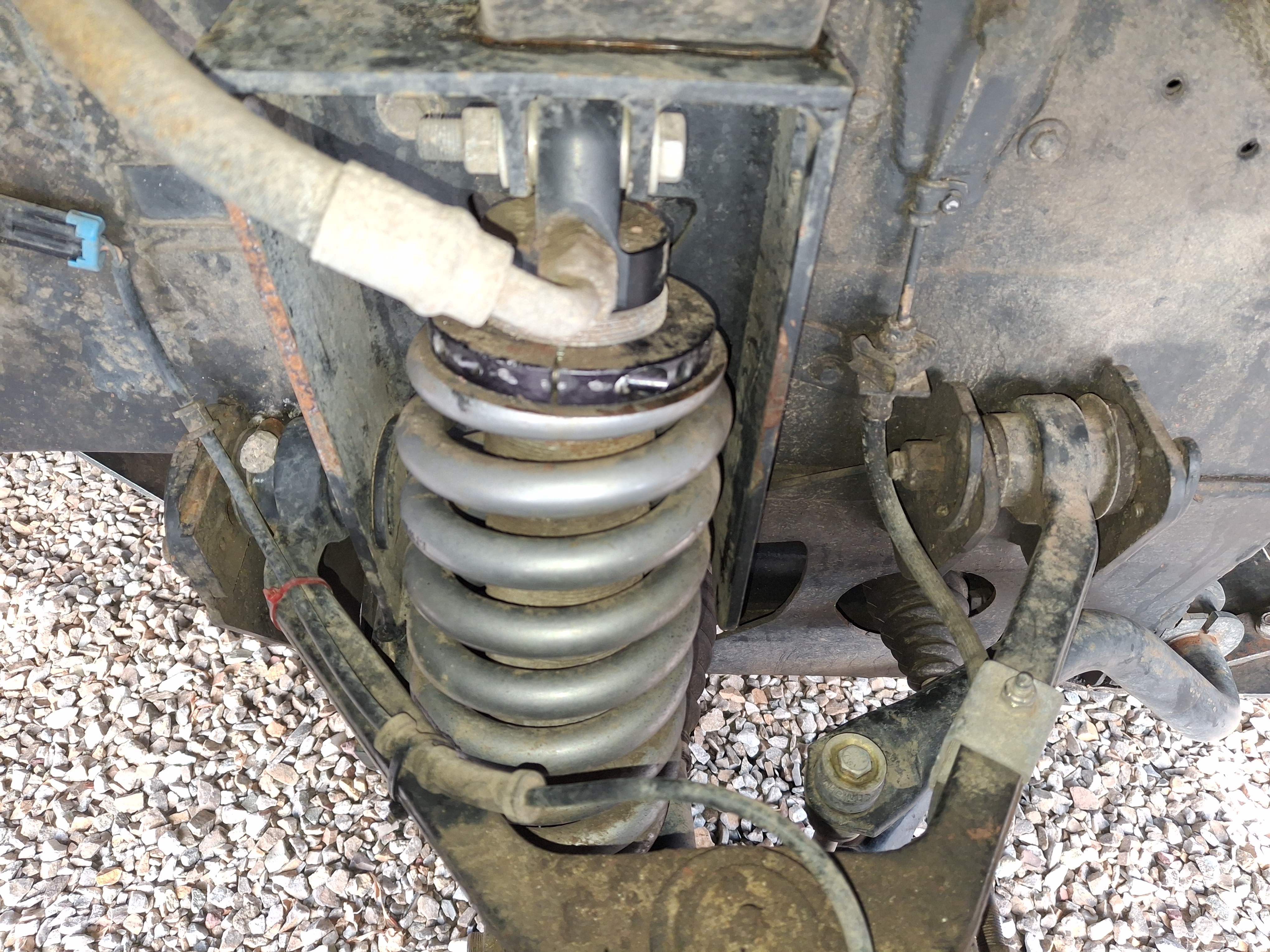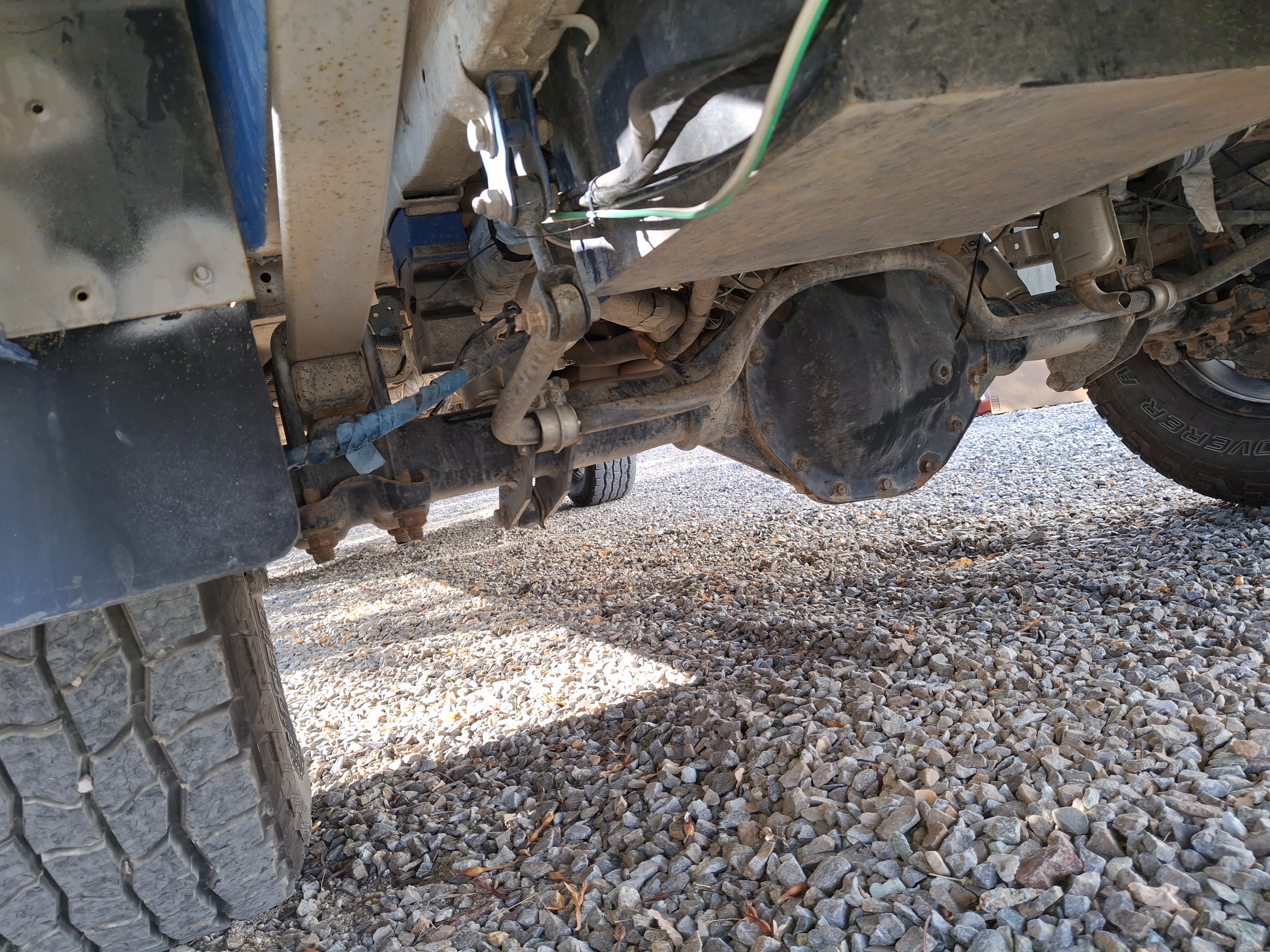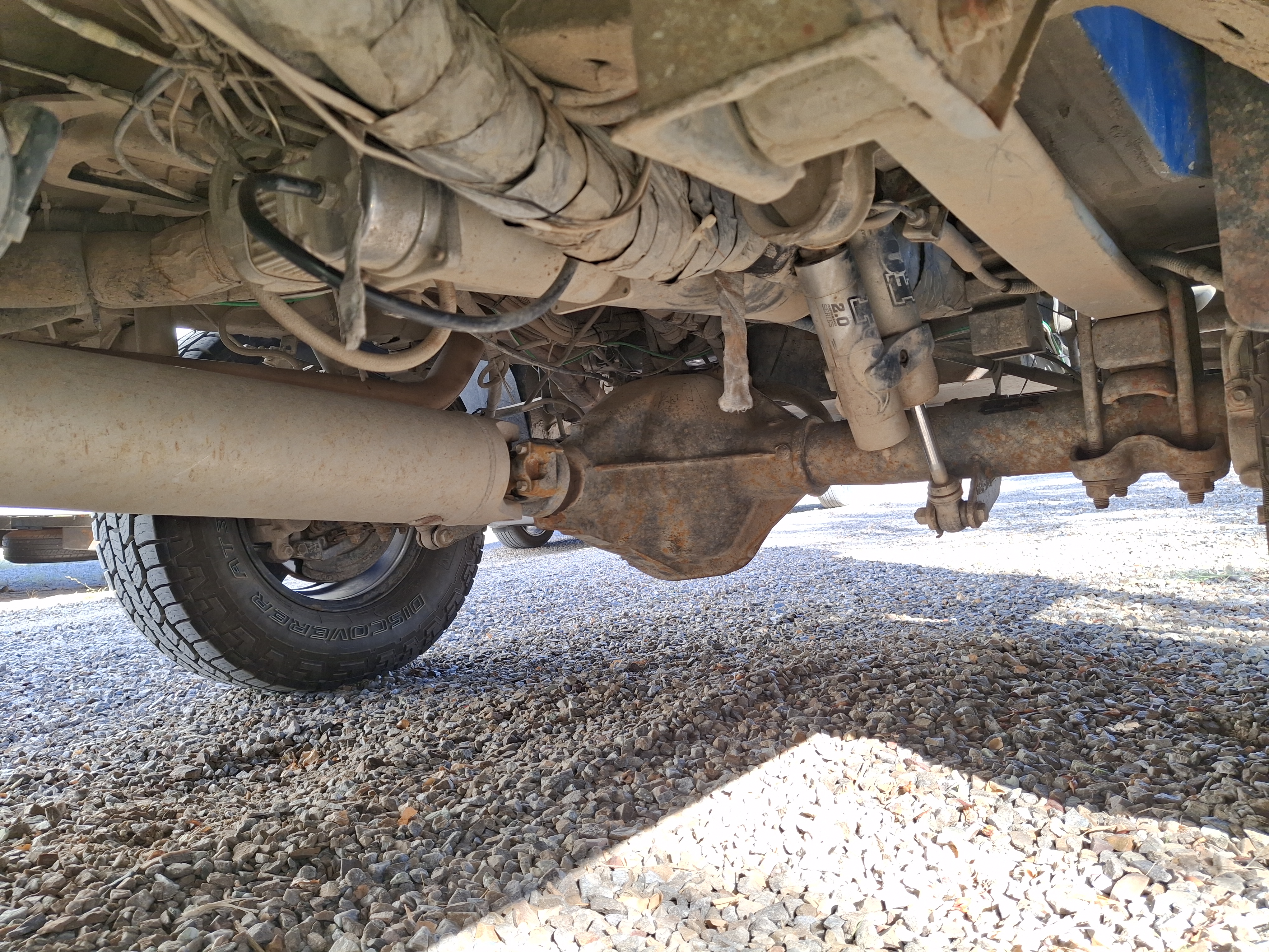 - Exterior is mostly factory paint with Blue Monstaliner applied over. Due to primer failure of the factory paint, extensive touch ups have occurred to varying level of success. Rust is minimal, and any that starts was dealt with quickly. During the occasional winter use, chassis and running gear is/was sprayed with fluid film beforehand.