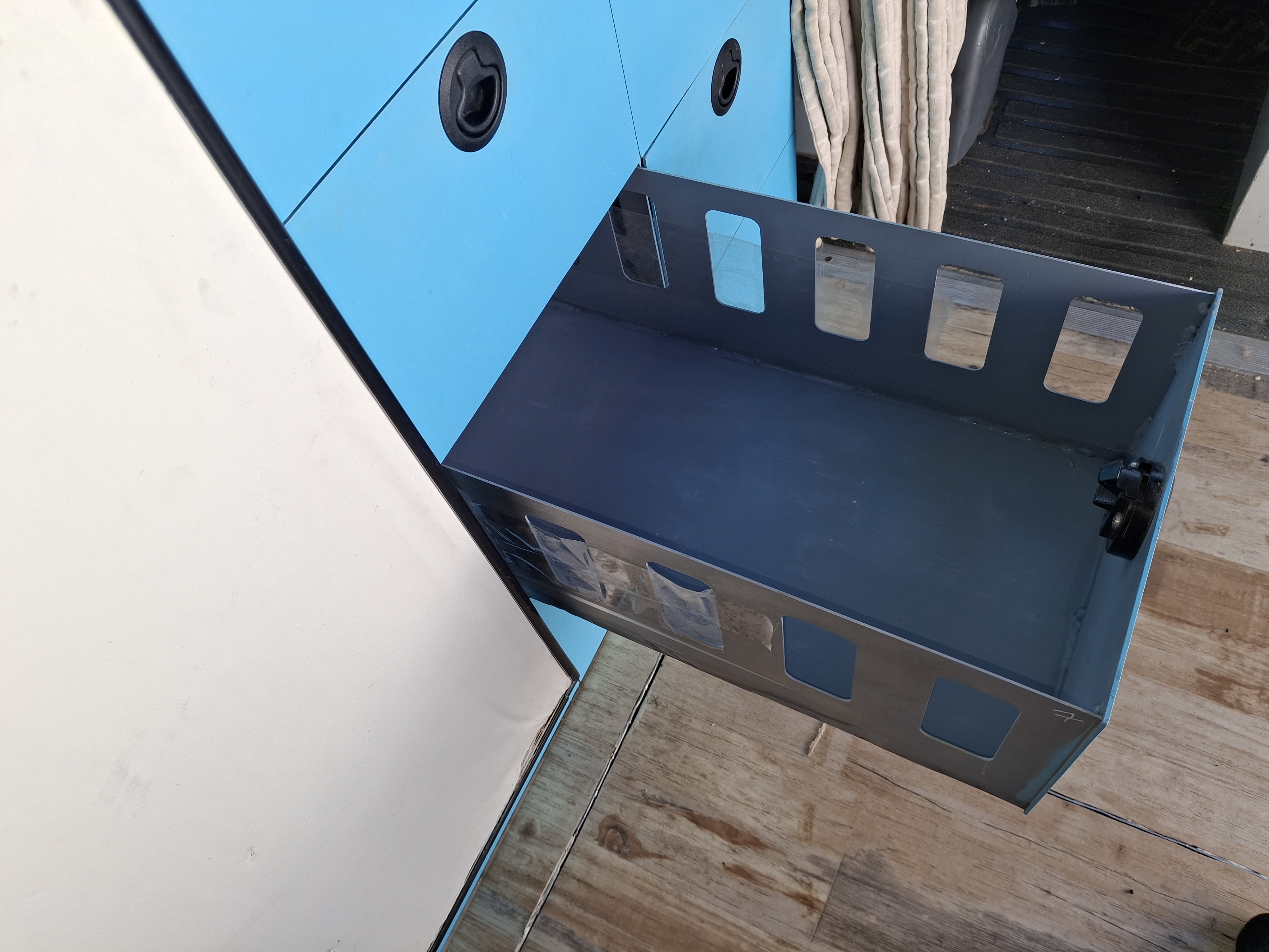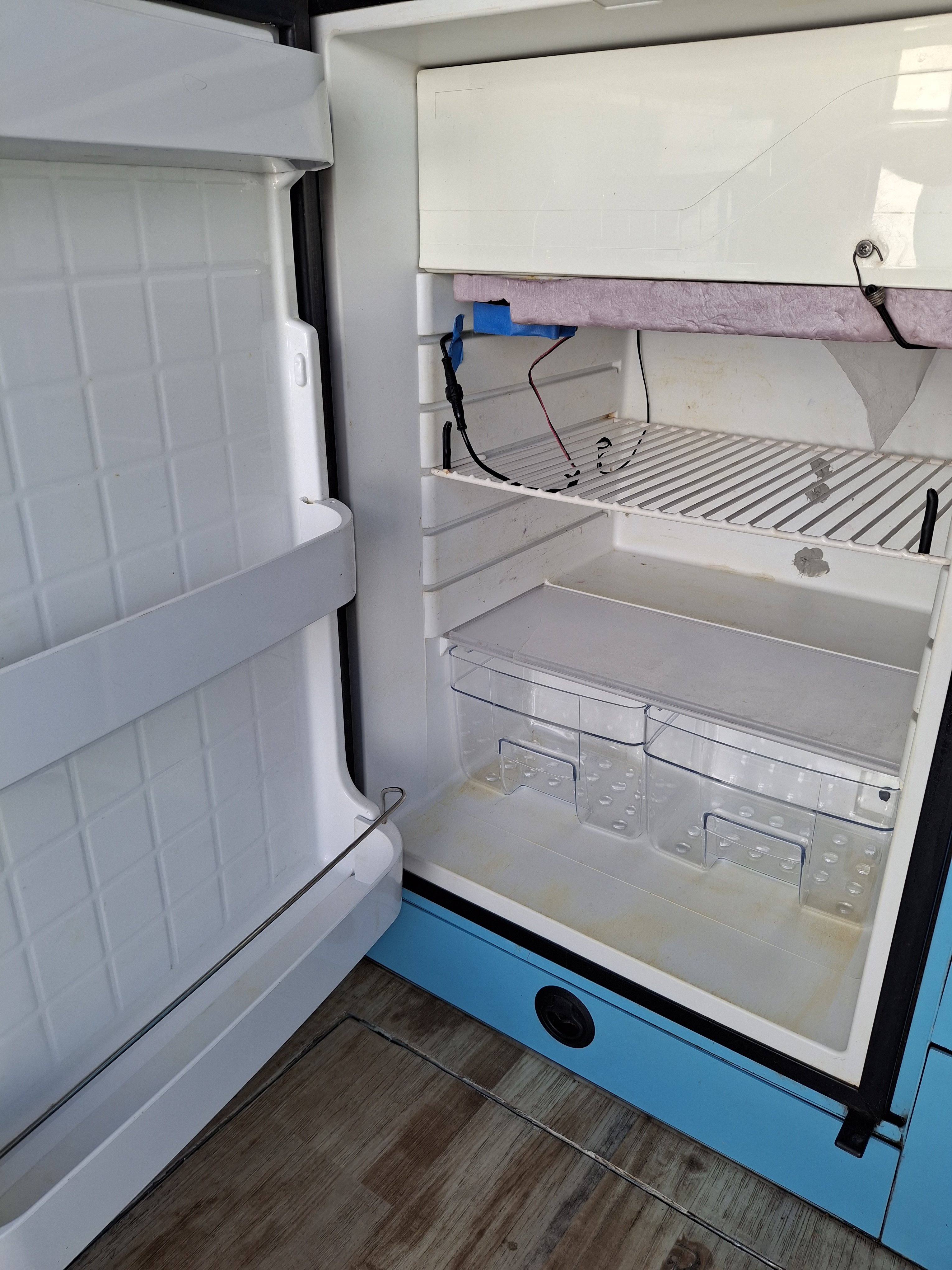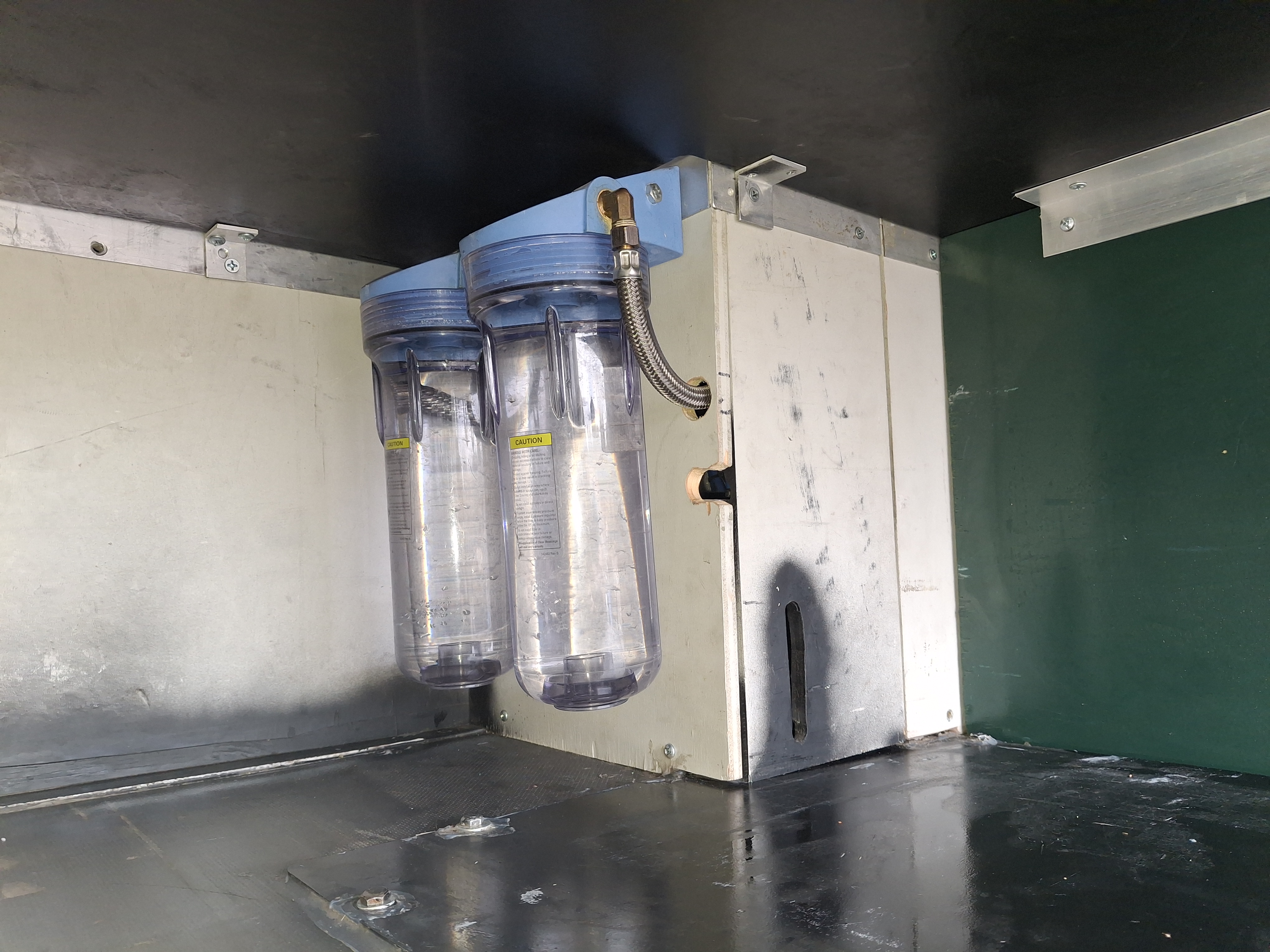 - Exterior is mostly factory paint with Blue Monstaliner applied over. Due to primer failure of the factory paint, extensive touch ups have occurred to varying level of success. Rust is minimal, and any that starts was dealt with quickly. During the occasional winter use, chassis and running gear is/was sprayed with fluid film beforehand.