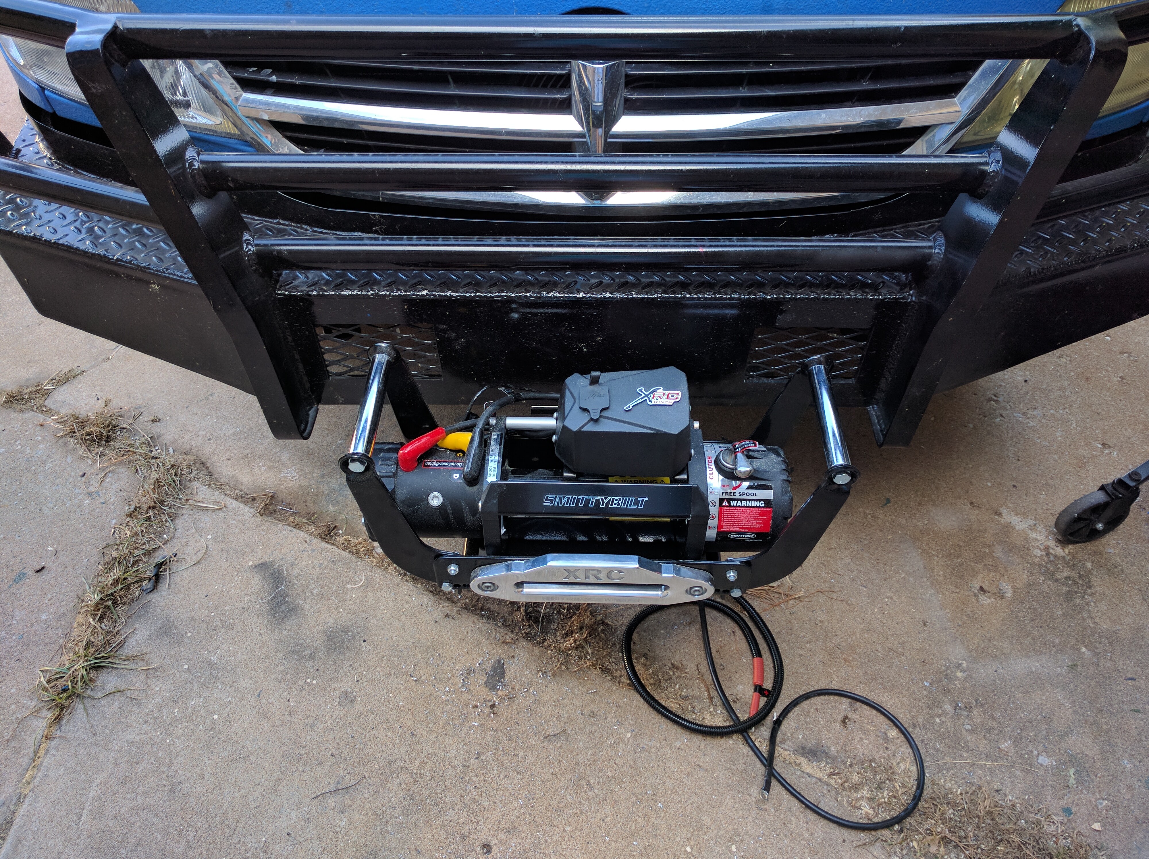 - Custom Steel front bumper with 2” receiver and harness for 8klb winch. Winch in cradle (front/rear usage) can be included with the sale. Bumper has been reinforced with brackets to chassis rails.