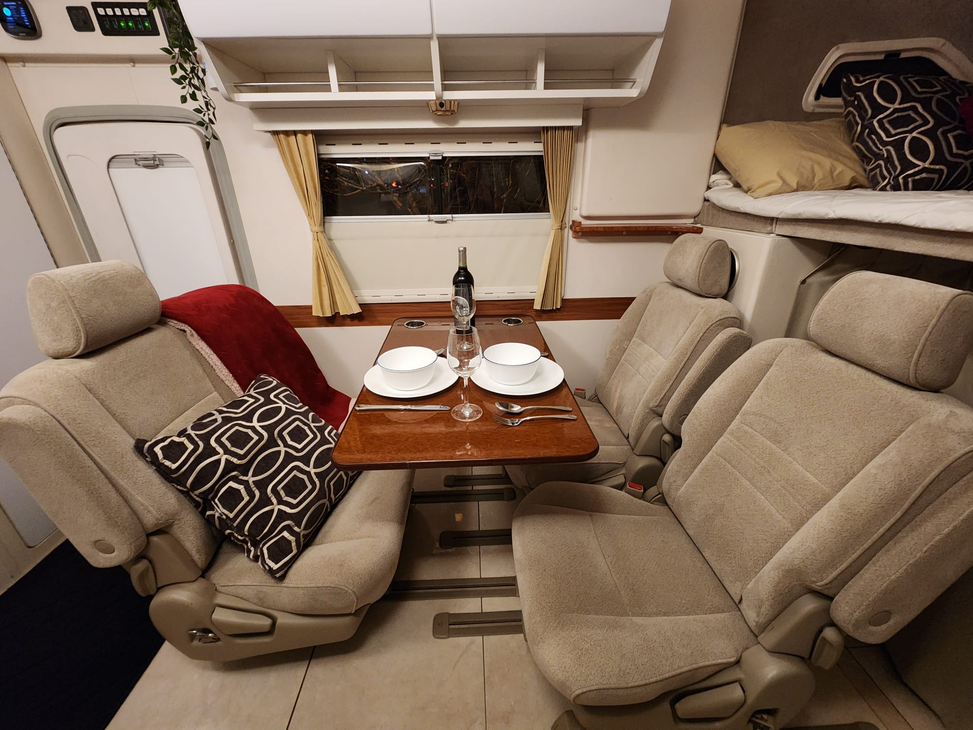 Hi, I am selling my 2005 Toyota Tundra Motorhome. It currently has less than 14k miles on it (not a typo). It has factory 4WD and has the 4.7L V8. This Truck was made in the US and then shipped to Japan where it was converted into a mini-motorhome. It was a single cab long-bed Tundra and the conversion only added about a foot to the overall length, which is 19’4” now in total length. Very nimble to drive and can park in most standard parking spots. Bench seat in cab seats 3 and rear dinette seats 4 and includes seat belts for all 4. Has a Viewtec backup camera monitor that can be left on while driving so you can always see behind you.