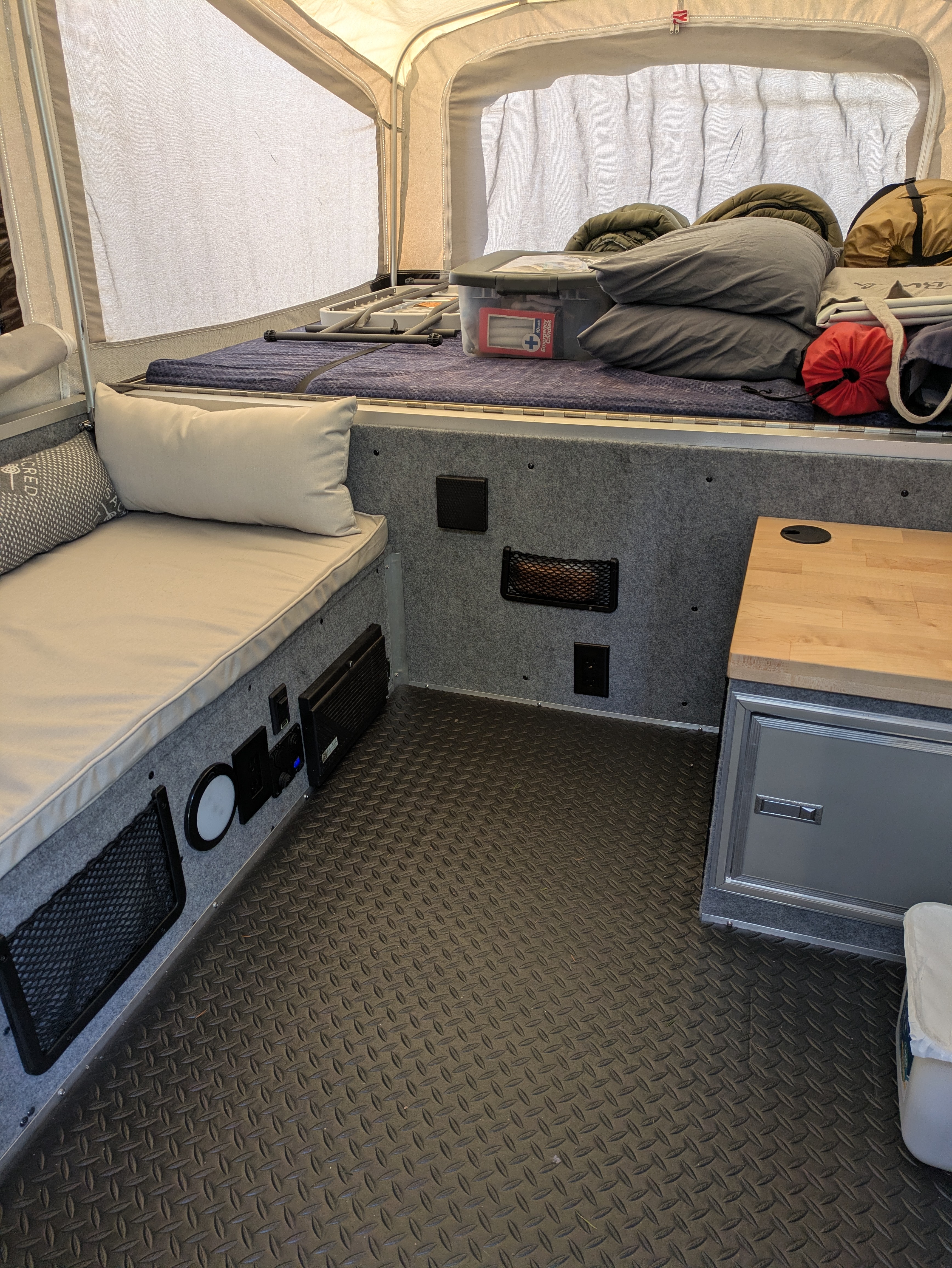 I am preparing to list this for sale. I spent five months rebuilding it. Stripped to framing. Insulated (R3), rewired. New led lighting, including all tow lights, rear porch light, interior lighting (white or blue). 5000btu A/C added. Electric heat added. Shore power and 100 ah HD group 27 glass matt battery. Battery cut off switch. Jeep fenders. 13" wheels with 24" tires, with covered spare. Speed rating 'M'. (Upgraded from stock 12s and 20" tires with 'L'speed rating). Bearings repacked. 2.5 gallon Rough Country water/fuel container. Everything locks with 2 sets of keys. Fire extinguisher. Mag light(led). Smoke/CO2 detector. Bench is 24x57. Includes sitting cushions, and 26x57 6" mattress (for little ones). Cup holders. Outdoor folding table. Indoor folding table. 2" foam mattress with cover. New rear step. Upgraded tongue jack. 4 pin connector. 2" ball. Tent top is in perfect shape. No rips, tears or repairs. 6x8 zip on factory rear awning with poles and tie downs. Many extras. Tags good until July '27. Clean, clear title in my name. Western Oregon. 97383. (503) 569-4746. 7000$ cash only. Health change forces sale. More photos on request.