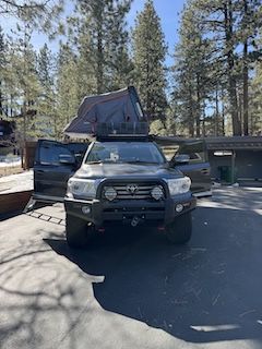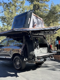 Tent has quick release attachments to a Front Runner rack with both front and side lights