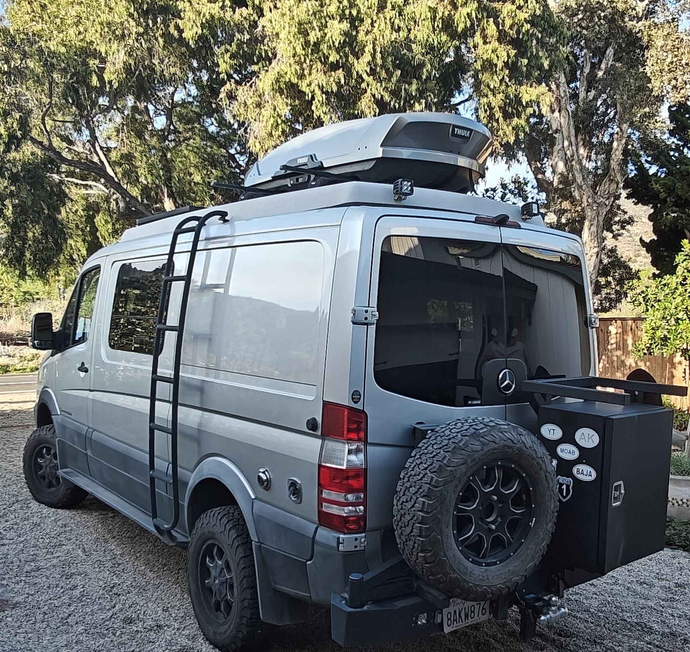 --Spare tire carrier and 2-gallon spare diesel rotopax