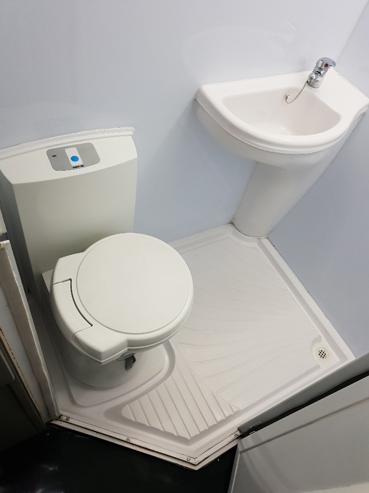 * Full interior WC, Basin, Shower, Thetford C-250 Electric Cassette Toilet