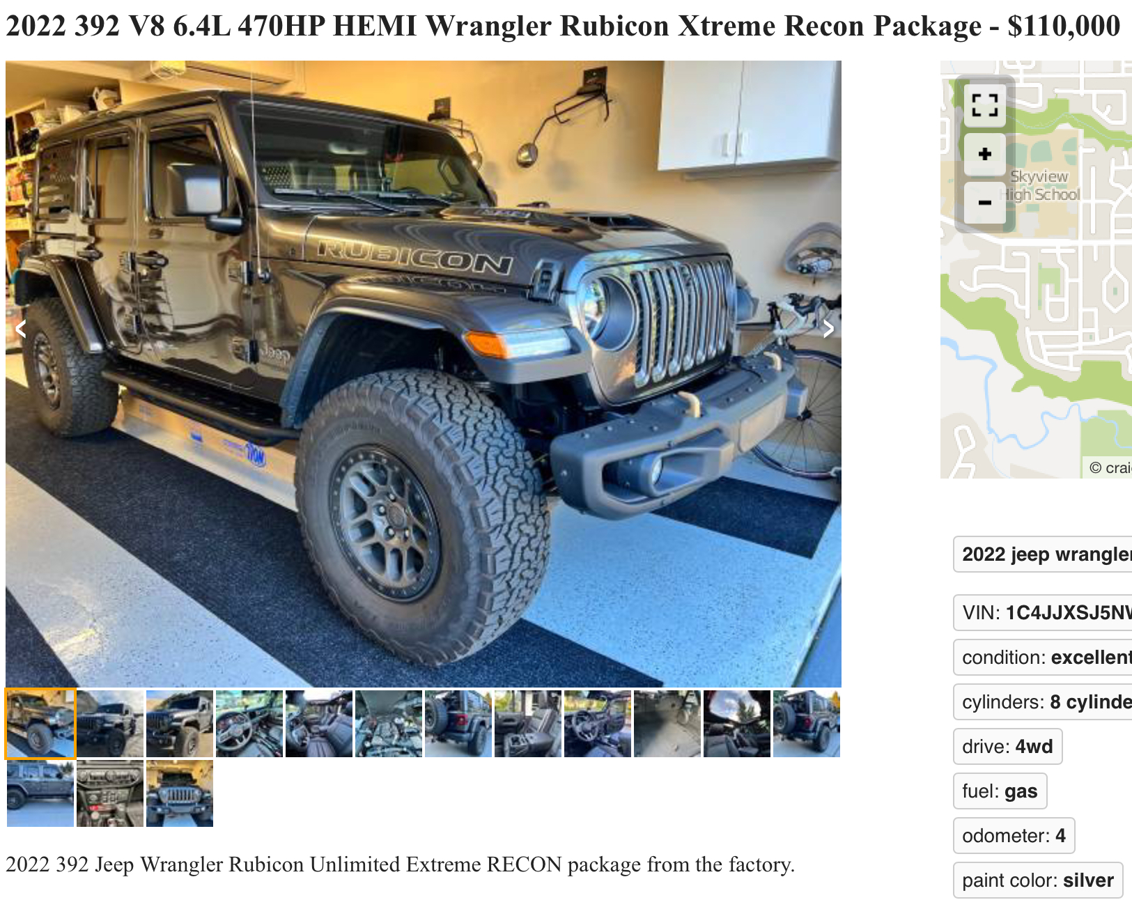 2022 392 Jeep Wrangler Rubicon Unlimited Extreme RECON package from the factory. - Extreme Recon package includes different gearing 4.56 (no need for re-gearing) - 3inch lift - 35-inch-tall all...