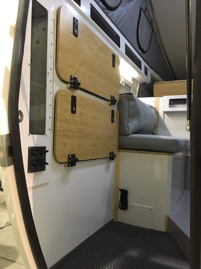 Sleeps 2 adults and one child or short adult (and 2 dogs :). Quality build is top notch, all wood is bamboo. Suitable for four seasons. https://earthcruiser.com/our-vehicles/earthcruiser-gzl/