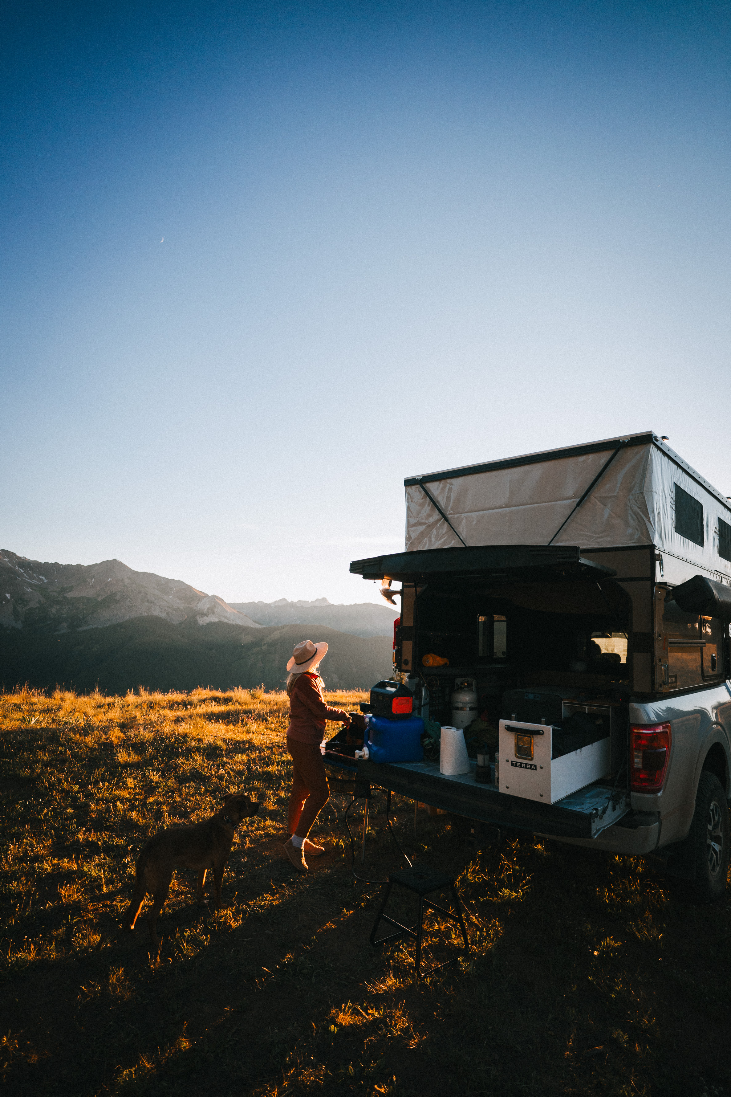 Overall the camper has exceeded my expectations. At 400 lbs dry, you don't even know it's back there. It's wide, which means LOTS of room back there — truly, it's cavernous! We have been using it super barebones (jug of water, milk crates for stuff, and an aluminum drawer below as we mapped out long-term design buildout — sad to say, no longer!) With that, it's fully stock, as it came from the factory. I have been running the 12V w/ a big battery bank that will come with me, as I haven't fully wired it in as a long-term solution, but LOTS of people just run Jackery or similar banks. Again, VERY easy to wire up.