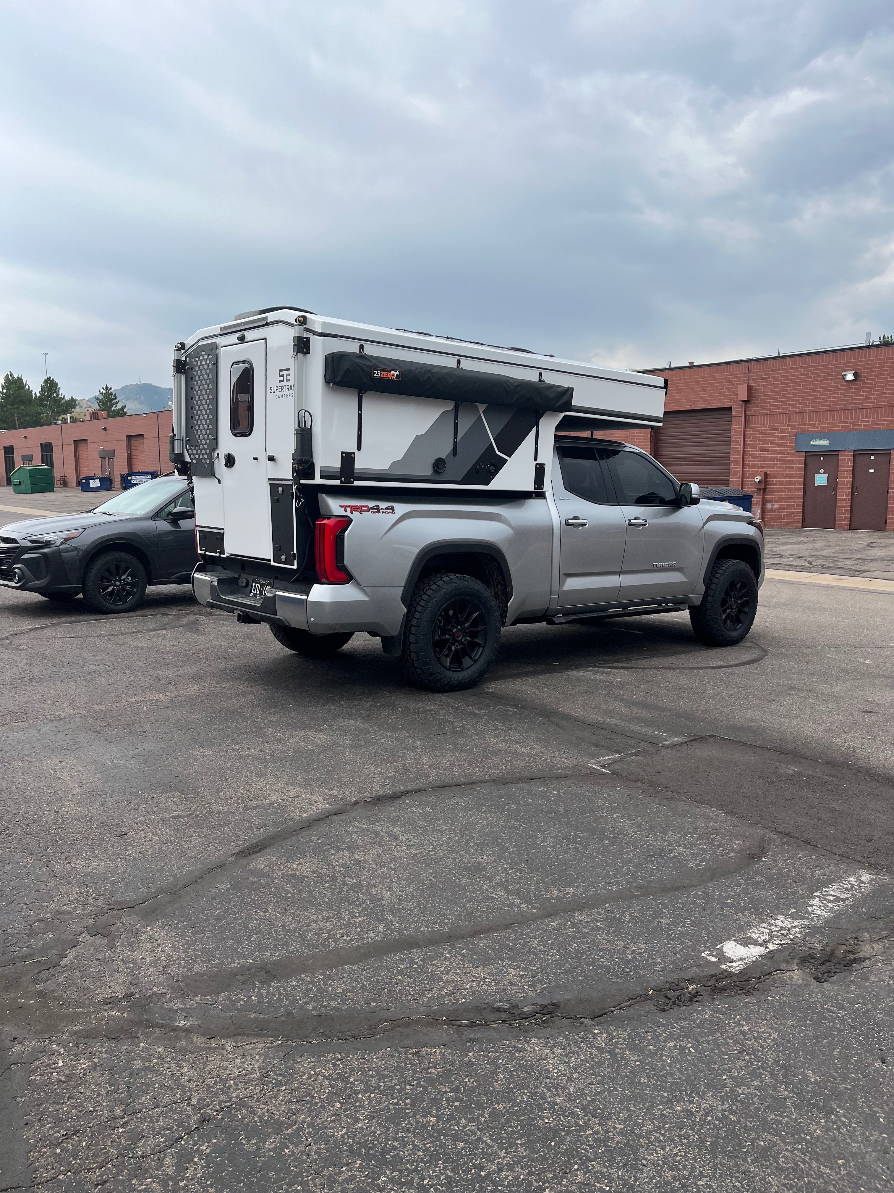 The Supertramp Flagship LT has all the amenities you need to head out camping the day you pick it up. Every camper from Supertramp is designed, engineered, and manufactured in-house in Golden, CO, and STC's state-of-the-art vacuum infusion process allows for a one-piece composite base and a one-piece composite roof. Opposed to traditional camper design, this manufacturing process offers advantages such as, better insulation properties, a stronger shell structure, and eliminates condensation when winter camping. The Flagship LT's one-piece molded design allows for shapes and angles that are unachievable with traditional standards, and it keeps the camper looking sleek and fast. Waterproof/breathable fabric keeps you warm in the wintertime and cool in the summer. 180 degree windows around the bed give balcony vibes when you find that perfect camp spot.