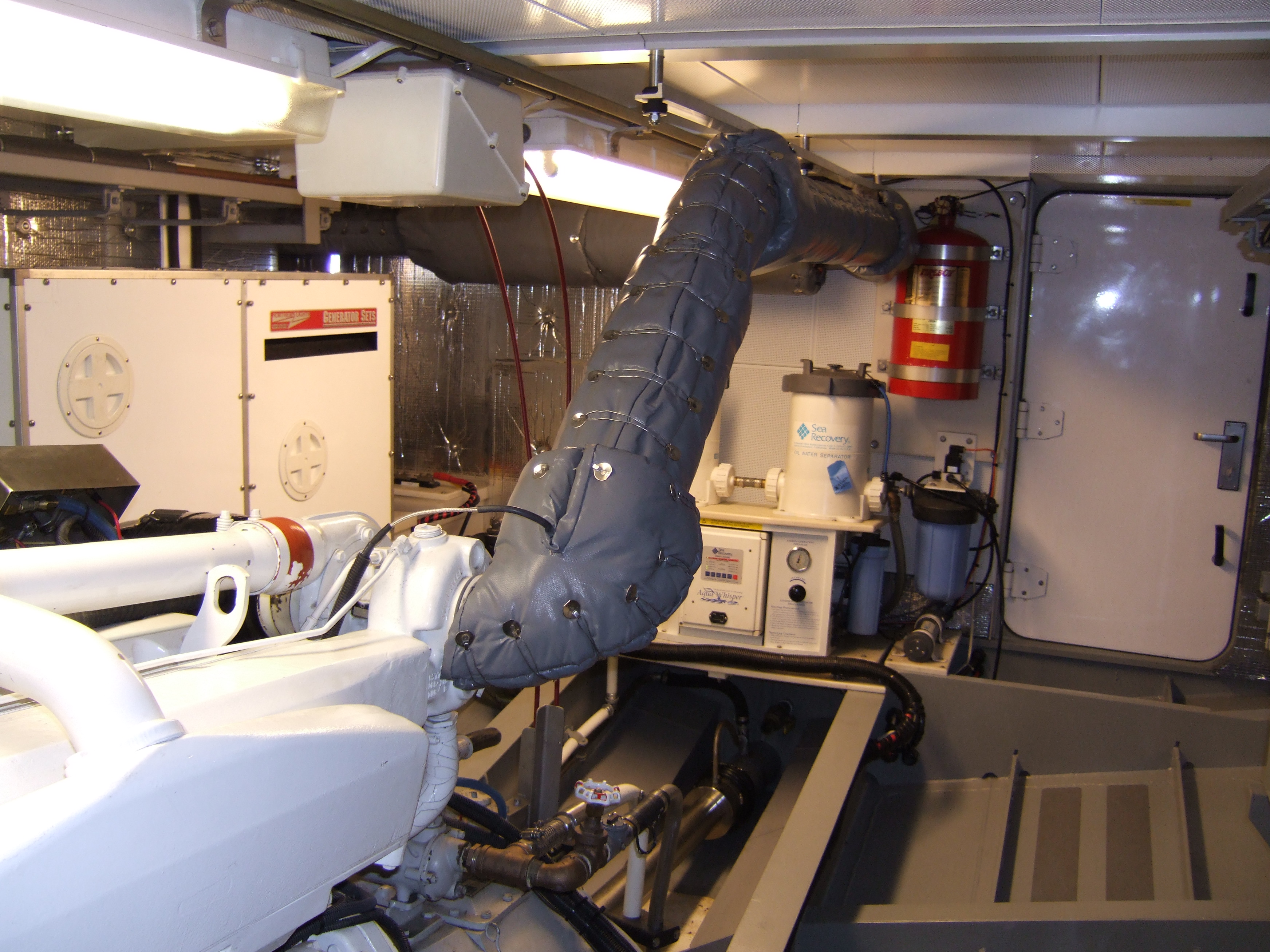 She has about 3000 nautical miles of range between refueling, with 500 gallons of fresh water and a water maker to extend that indefinitely. A 20KW Northern Lights genset keeps all the equipment running off-grid, but 1.6KW (24V) of solar and a large battery bank (recently replaced) means you really don't need to run it most of the time. A John Deere 6081 diesel with 330HP moves her through the water at about 8.5 knots and a Hundasted controllable pitch gear/prop combo keeps things efficient. Wesmar 25HP hydraulic bow thruster helps with maneuvering. We've run her up and down the Pacific Coast for about 7-10 days continuous with no issues and great comfort due to the hydraulic stabilizer fins that keep rolling under control. Dual chart plotters, radars, about 9 GPS systems, SSB and VHF radios, AIS system, FLIR PTZ camera and more keep this gal on track and safe in any condition.