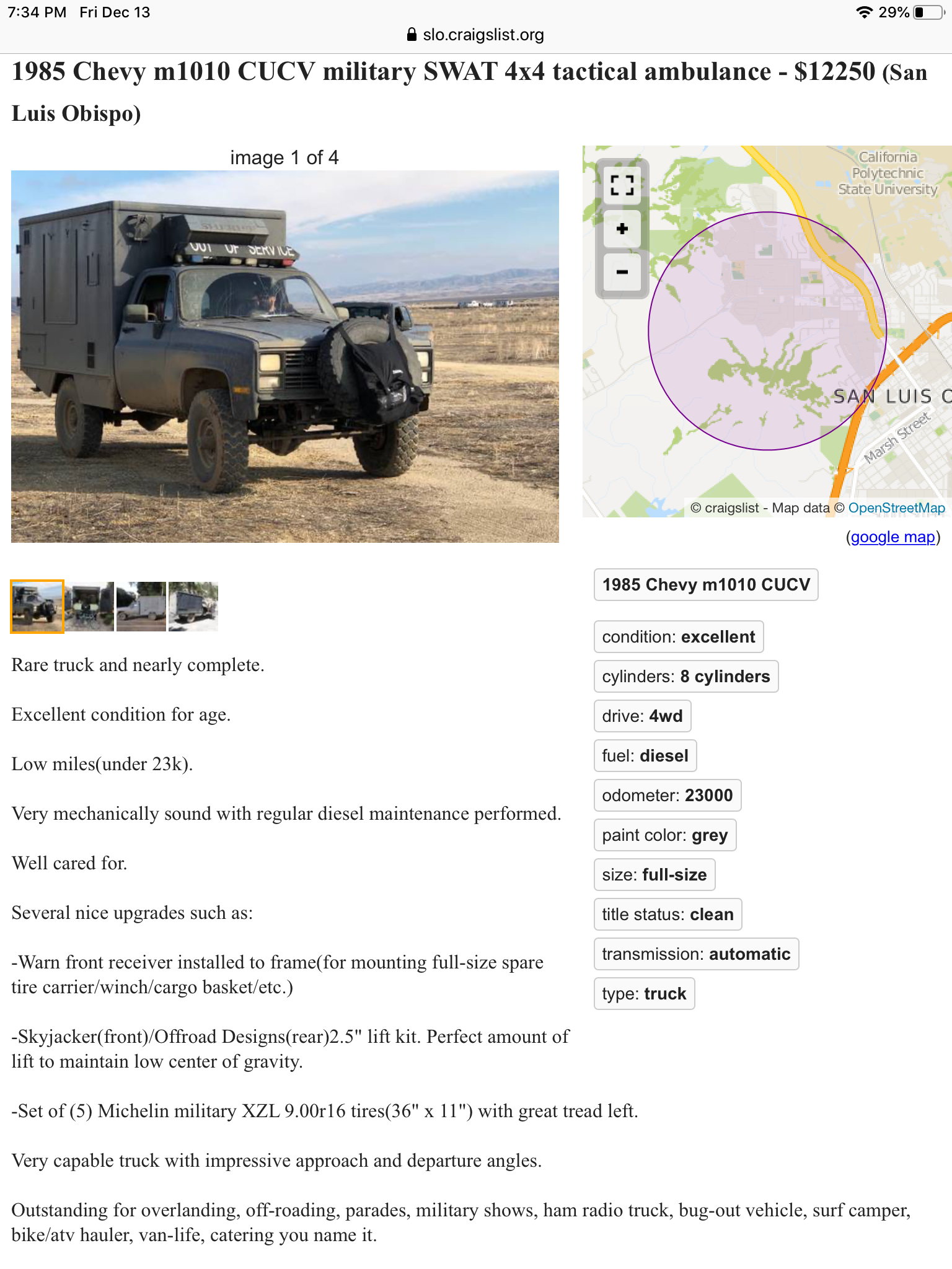 Another Smokin Deal...Chevy OD 4x4 Lo Miles Military CUCV Ambo, @$12k!