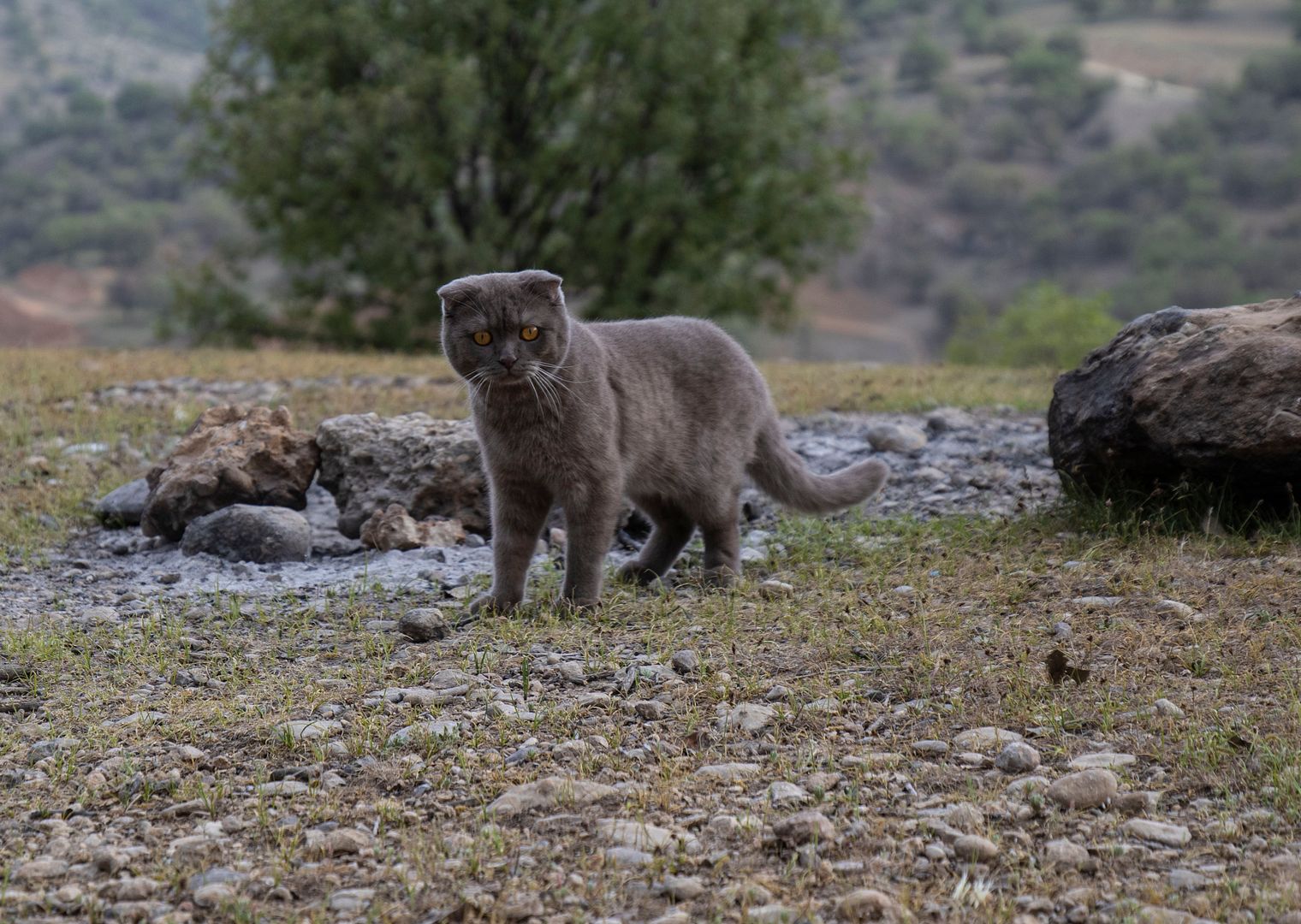 The cat out and about doing his thing: I will add since some people skitz out, we just stopped here for lunch, that is not our fire pit, and anyone who has traveled Iran can back up the fact that the locals basically refuse to reuse a firepit so the area ends up scattered with them sadly..