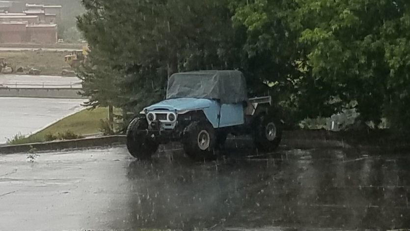 A cheap Jeep YJ cab cover fits well enough for when you want to leave the top panels at home while getting caught in a monsoon.