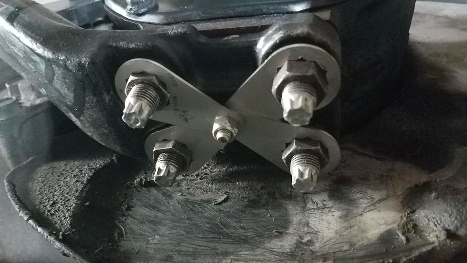 The final tweak on the knuckles was to make some lock-plates for the nuts to help keep them tight long term. While I think the steering arm tabs made the most difference, these plates can't hurt anything. They are stainless steel and key into a small threaded pin that was drilled and tapped into the center of the steering arm when I had everything apart. This pin is bottomed with blue loctite and uses a nylock nut to hold all 4 tabs in place.