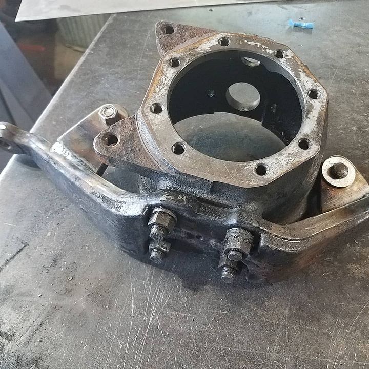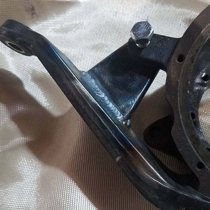 I was able to sneak a 1/2" thick tab in each location that was positioned so that the arm could still be removed. The angle of the kingpin bearing axis makes only configuration possible so the tab isn't trapped by the steering stop boss itself. The clearances between the caliper and tab is pretty tight. I ended up having to tap those tabs and drill out the threads in the steering stop boss in the tie rod location to sandwich everything together. The tabs where also sized to maintain access to the lower caliper bolt. Everything was TIG welded together and allowed to cool nice and slow wrapped in welding blankets and carpet. The stock steering arms actually welded quite well. I think these are forged steel parts.