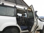 boll_rig was kind enough to send me some pics of his disassembled Sub cargo area, enough to see the 'C' pillar and the substructure above the cargo side window are box structures formed from formed sheetmetal. Hollow and perforated with enough openings that I think it would be a straightforward operation to add a couple eyebolts high up the C pillar near the ceiling line. Sandwich the sheetmetal in large fender washers to spread the load as much as possible, keep the eyebolt nut from just pulling thru, and I think it would be plenty strong enough for the purpose.