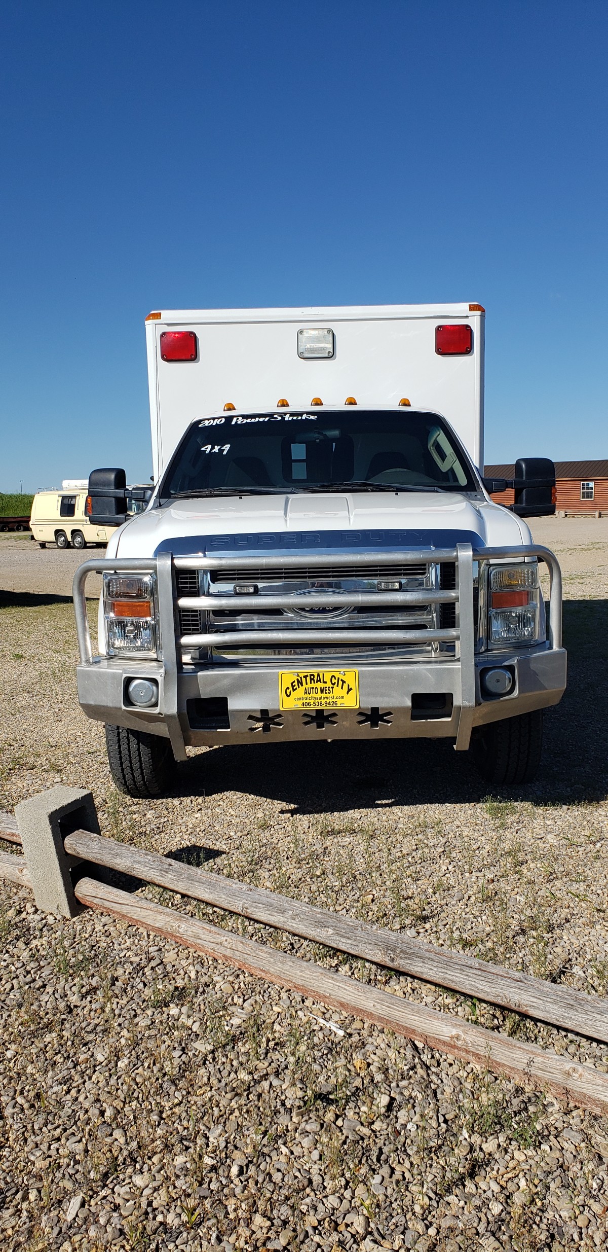 I was walking my dog a few days ago and saw this 4 wheel drive Ford Ambulance for sale on a used car lot (Crystal City Auto West) in Lewistown, Montana. I took a few pictures in case anyone was interested. I saw one very small dent in the drivers door and other than that it looked pretty good.