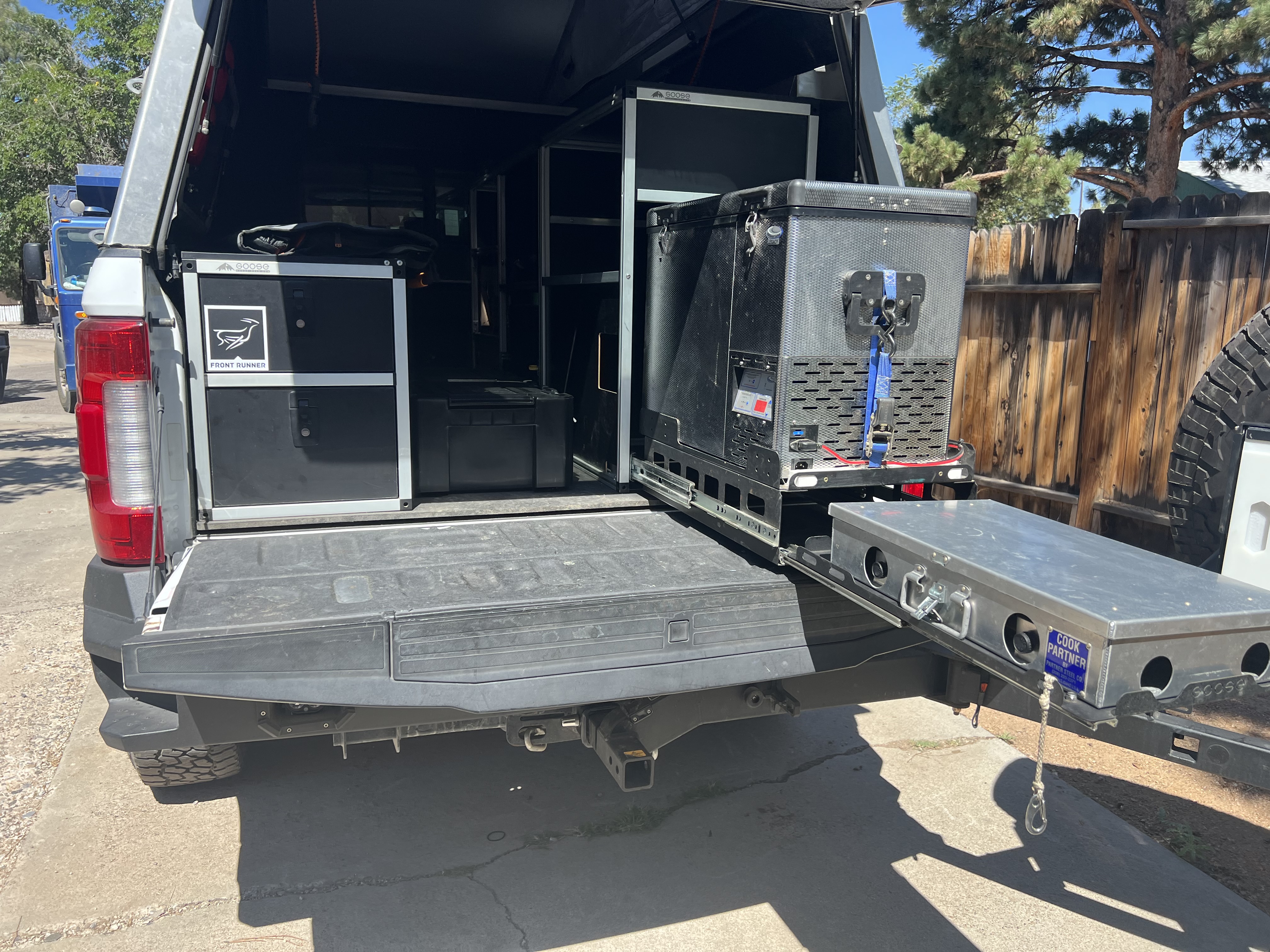 Internal build out is as follows 14,356 to build asking $5500 This was in a Superduty with a 6.75' bed. The Goose gear platform could be modified to fit in a Full size truck beds with a slightly smaller bed. A few inches from the front near the cab would allow for better fitment. Currently Removed and ready to be loaded into your rig. Located in Albuquerque NM
