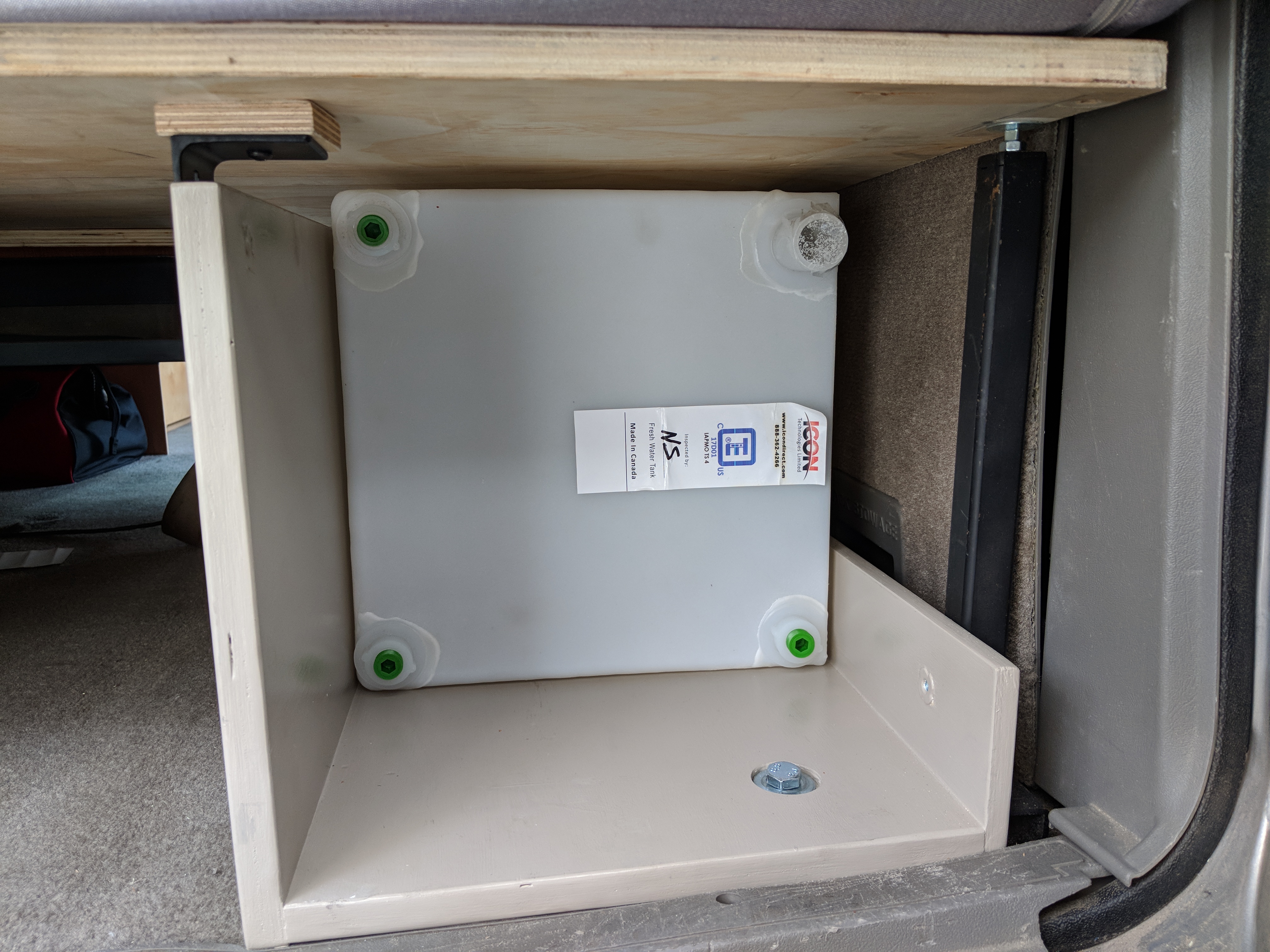 Relocating the water tank freed up the original space for more storage under the bench seat. Most of this has been dedicated to the