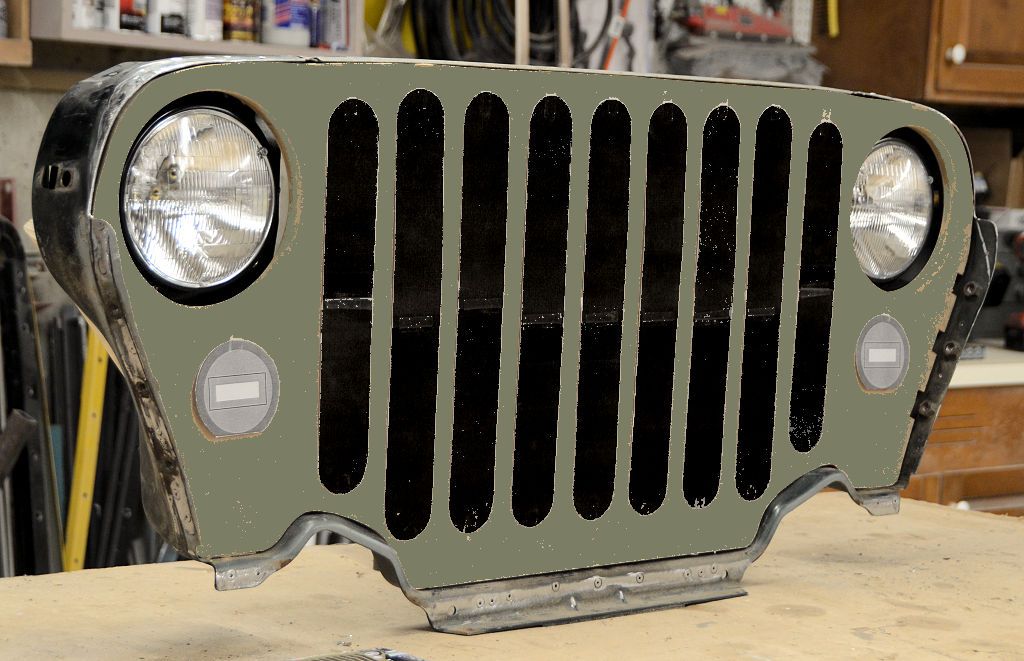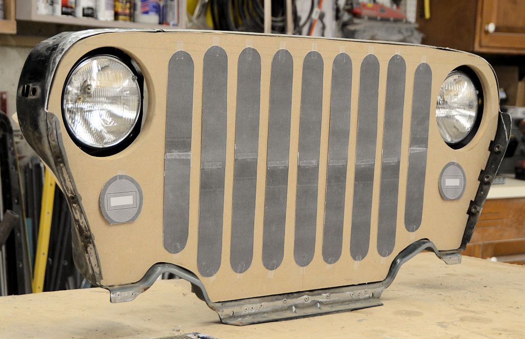 The TJ grille protrudes past the edge of the hood but on the original MB/GPW the hood overhangs the grille so I made this grille so it sits slightly behin the front edge of the hood.