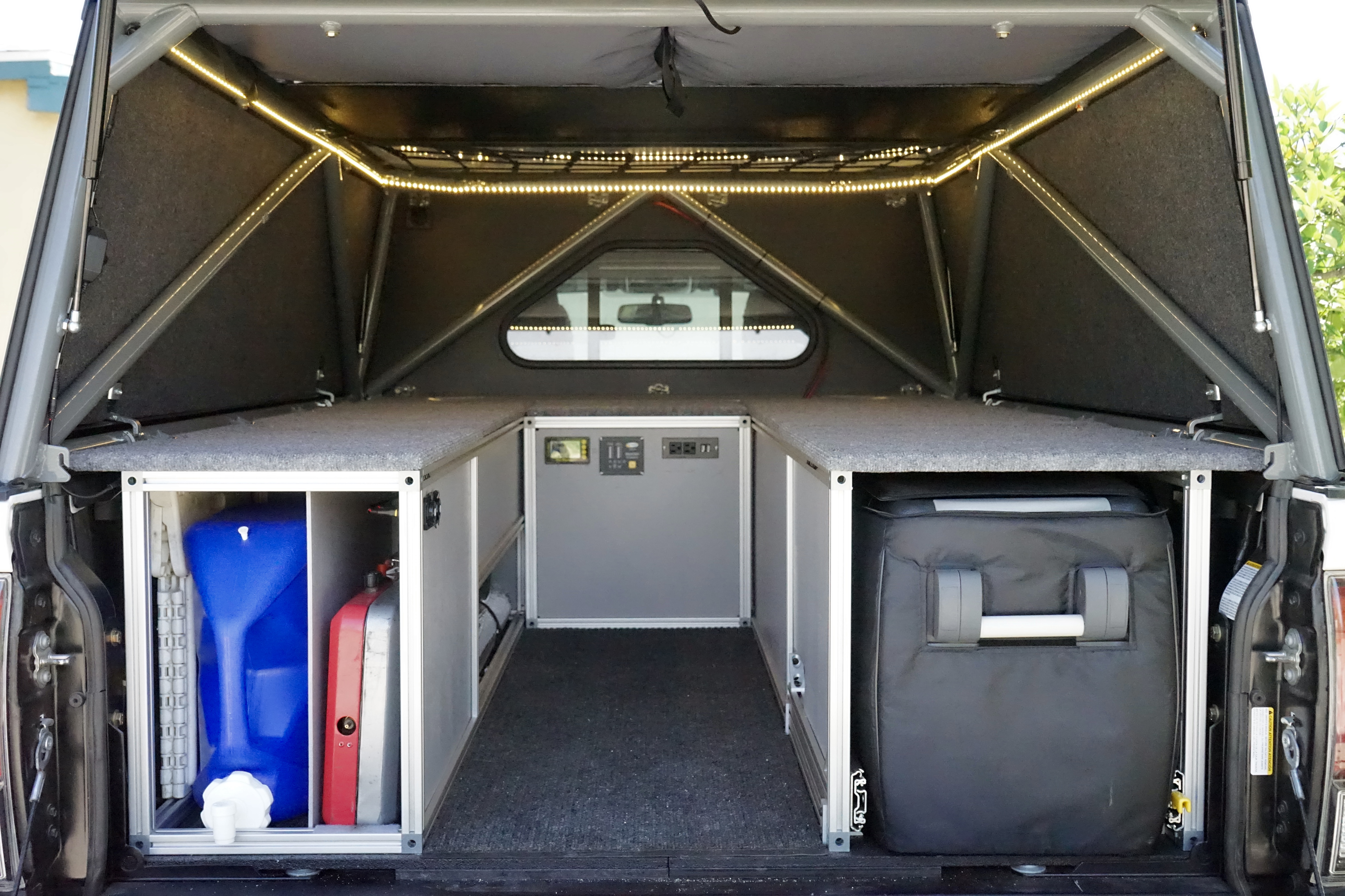 FOR SALE: fully custom interior build, designed for a GFC/vagabond/super pacific/etc. on a 6’ 3rd gen Tacoma bed (could be shortened to fit 5’ bed). Includes a top of the line solar electric system and custom fit storage build-out inside.