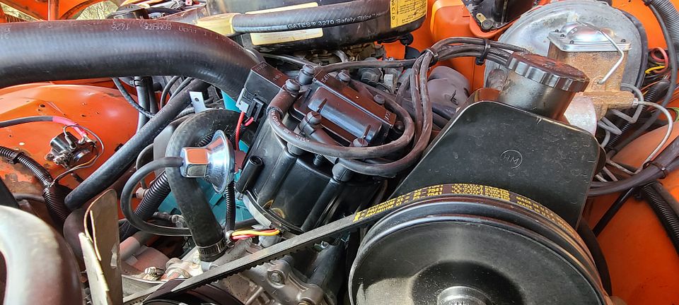 If any of you have ever installed an HEI in a domestic V8, you will know that there is no one way to clock the distributor. After many minutes of searching the web for pics of an "AMC V8 HEI install", I decided to wing it. The two pinch points are the vacuum advance and the electrical connector at the pickup. Those both needed to clear things on the engine. After fitting it a couple different ways, I found many ways not to install an HEI.