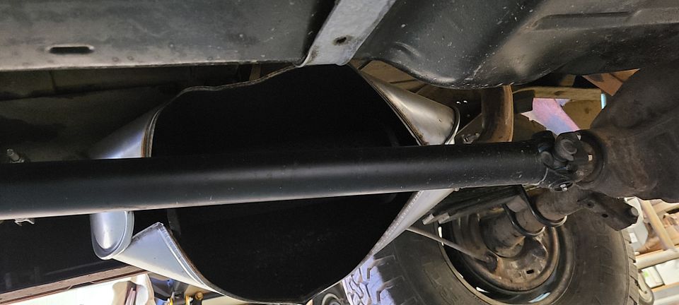 Once it was in place, I joked to my friend who was helping in the shop that day, thay we didn't know if the distributor would be spot on, or 180 degrees out. You can guess what we found out. The bang that came out of the engine was so powerful that my helper crawled out of the inside of the Jeep holding his ears, and my new shop pup was nowhere to be found. The resulting blast also blew up my brand new muffler. Bummer...