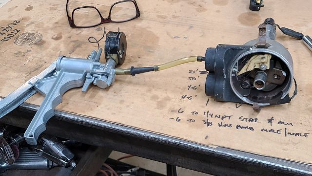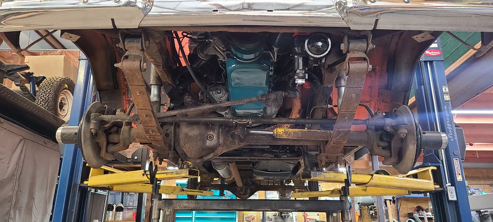 Another item that needed attention was the power steering. Even with the pump cleaned out and verified for flow, the box apparently gave up the ghost and would not accept the hydraulic fluid. Red Head Steering Gears is my go-to for steering box rebuilding, and I had a new one in a day. New hoses, new pump, new box. Everything there now works like it should. I even rebuild the shaft between the column and box and installed a new rag joint.