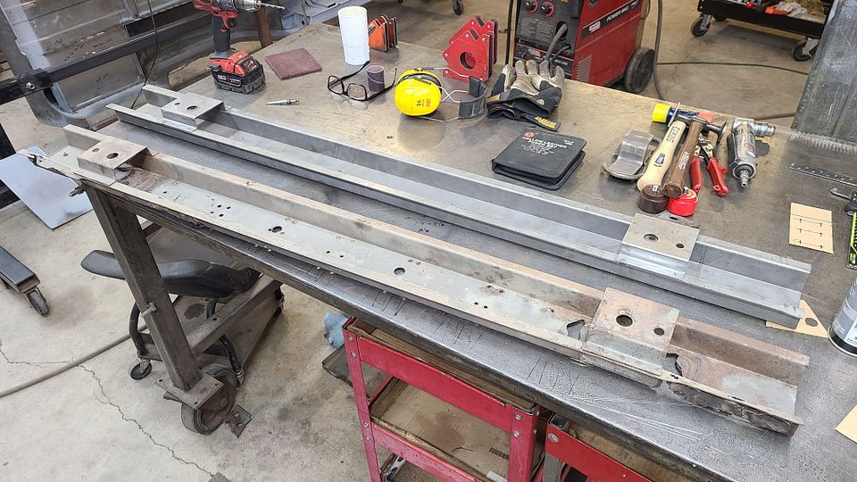 The rear floor section was replaced with patches which I formed up here, but figuring out how to recreate the floor ridges took some thought. Ultimately I bought some new dies for the Mittler bead roller and modified them in the lath to get the proper shape and depth. New corner sections were formed and welded in place, and then everything was primed before the rear body structure piece was fit and welded in place.