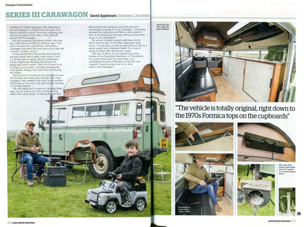 The camper ideas I posted over the weekend convert the inside of the Land Rover to a sleeping area. The Carawagon was a commercial camper conversion that does that too, but provides more headroom with a pop-up roof.