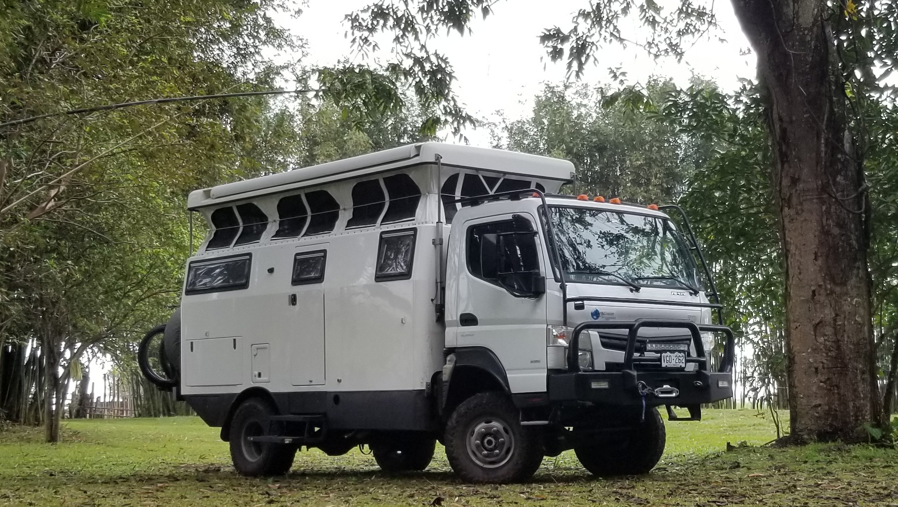 Hi Dave, there are a couple of spots on the Pacific side toward the top that width wise would be tight. It wouldnt be a problem box wise but the track would be very tight. I had thought a couple of times that i was glad i had an Earthcruiser instead of an LMTV or GXV. Also, just after the last farm on the Pacific side there is 200 meters of very steep road that is very soft and quite sloped toward the inside rock wall. I carried a bit of speed through that section and was prepared to shut it down and winch up if i had started to slide. I am only 13,000# and that made a difference. After the hurricane/tropical depression season in late fall the upper part of this road is not passible to vehicle traffic till they can run a bulldozer and grader down it. Pic taken at a campsite near the top.View attachment 530588