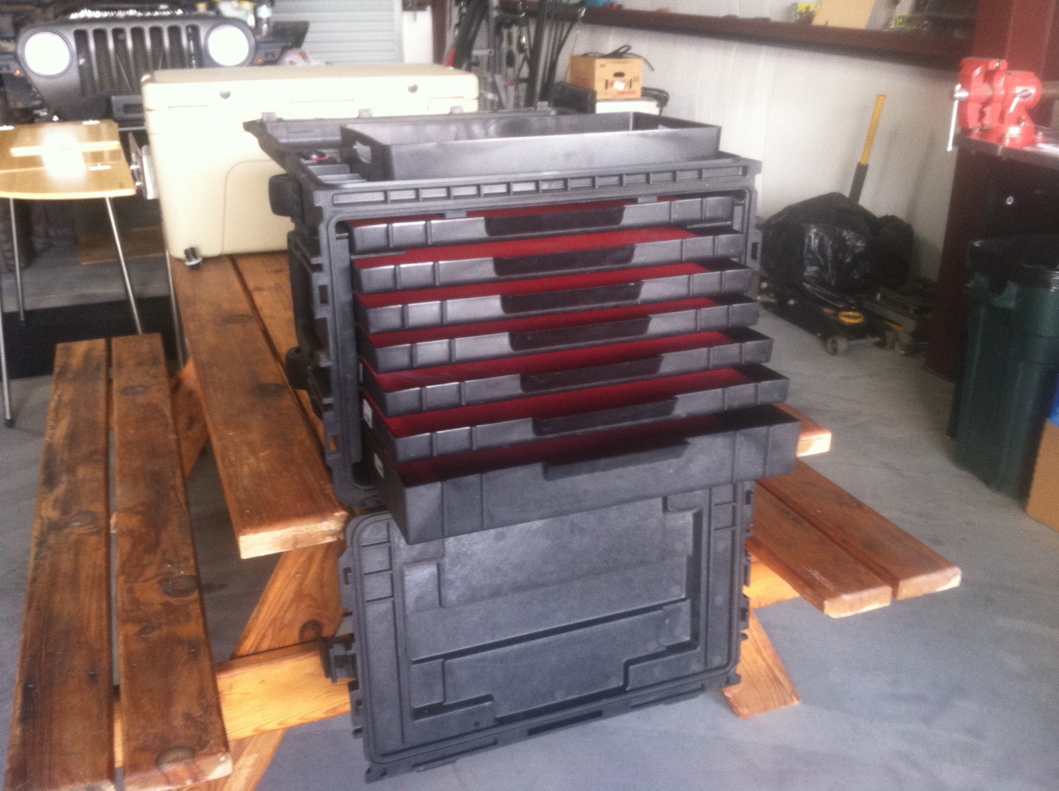 Like new condition Pelican mobile tool chest. Hinges, clasps, handles, wheels all work as new. All drawers intact.