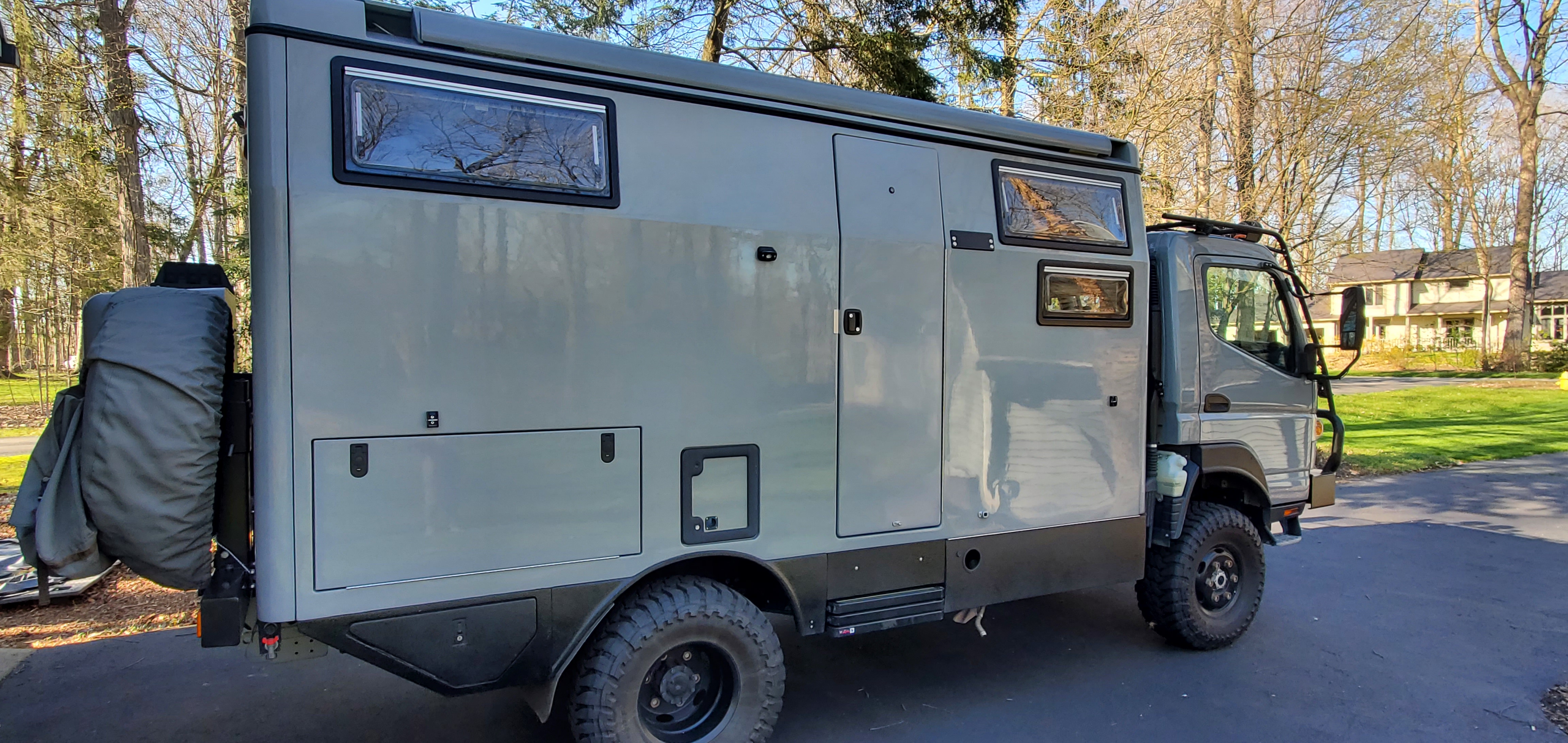 • "Built on a 2017 Mitsubishi Fuso Canter chassis by EarthCruiser of Bend, Oregon in 2021
