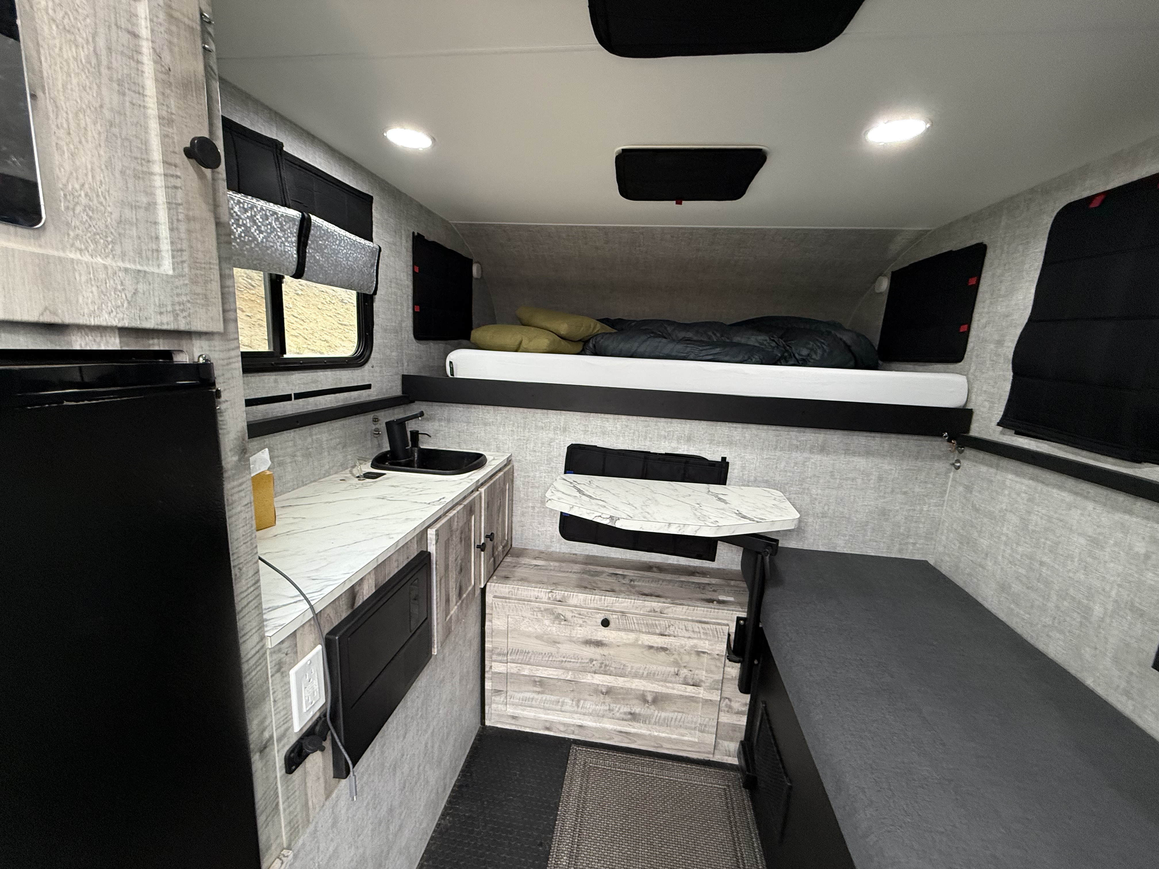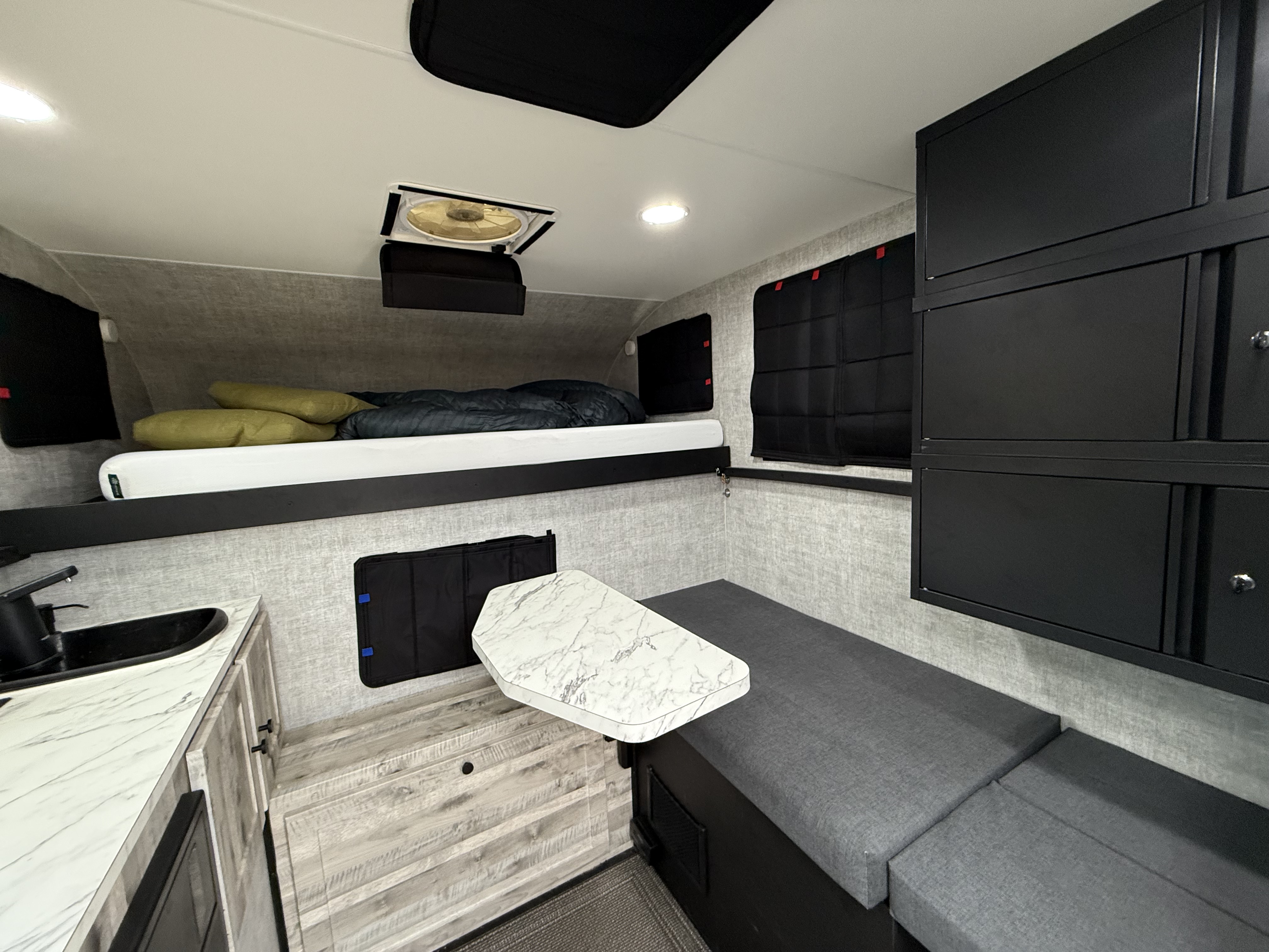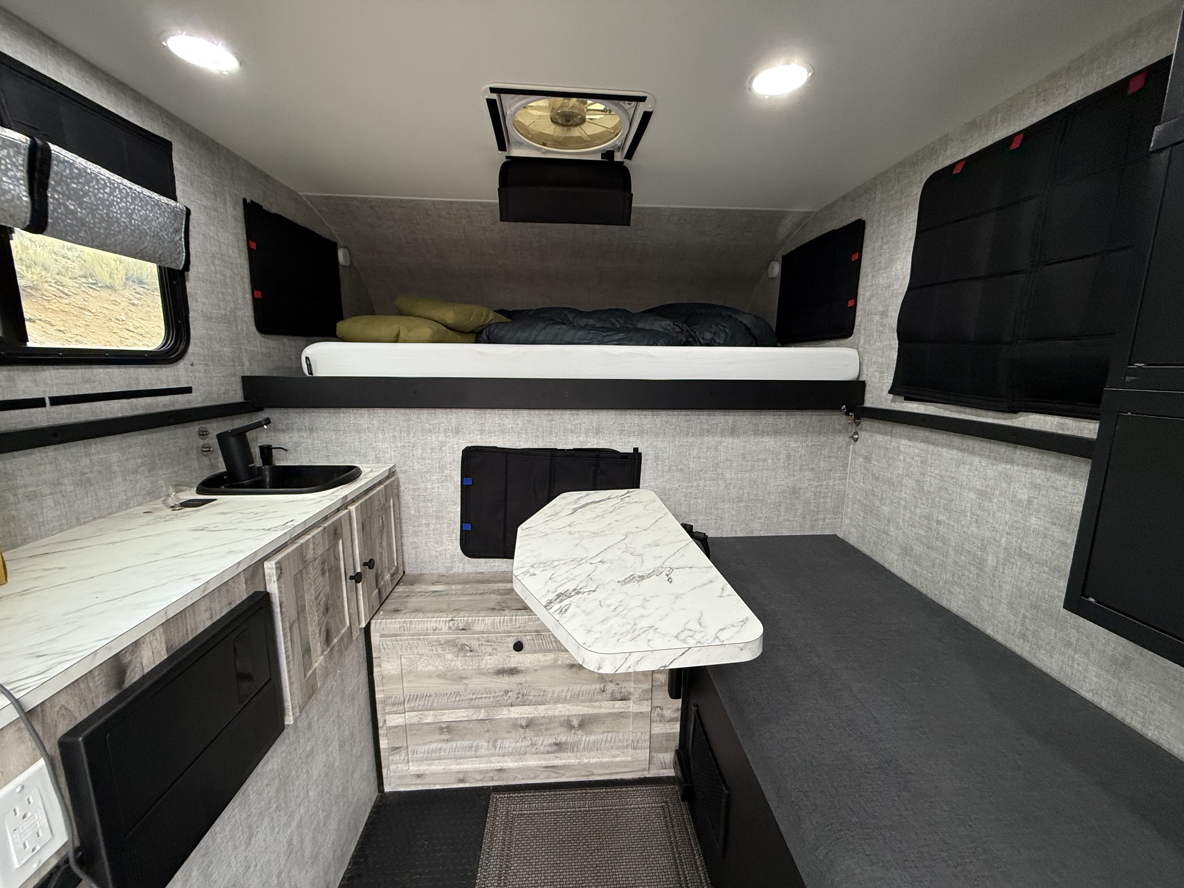 Some upgrades include Kammock awning mounted low for ease of use, prewired for 12volt starlink Mini, magnet mounts for starlink mini (you'd just need to plug yours in with the veritas van case), 23 zero shower tent hard mounted to drivers side, 100amp hr battery, low twin bed / sofa, custom aluminum cabinets, and custom open floorpan, dometic go faucet, lots of storage, go power 200watt solar panel, and charge controller, dometic 5 gallon cassette toilet, quick removal jacks, dog proof lower steel screen door protector, 5 lbs propane tank that mounts to the jack brackets, Lagun style table, max air fan covers for both 12 volt fans, upgraded blackout / reflective window covers, extra ratchets and more.