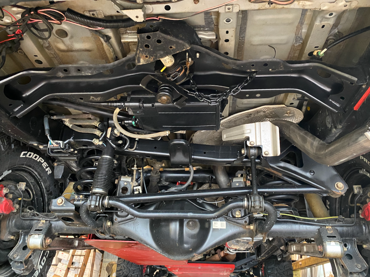And thank you for the question. As far as weight, I've not had it weighed. But because of the extra weight (from the armor, bumper, kitchen, extra battery, and the larger tires, I had it re-geared to 4.56. It made a world of difference in the ability to accelerate and merge onto the interstate, it also made a nice difference in 4WD low, but it didn't make a huge difference in the RPMs at highway speeds, although they're slightly higher. It runs about 2300 RPMs at 70mph (see photo).