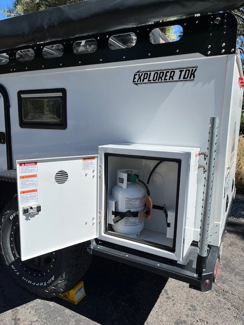 10 lb propane cylinder in dedicated cabinet with 2X external quick disconnects (cabinet has space for 2 cylinders)