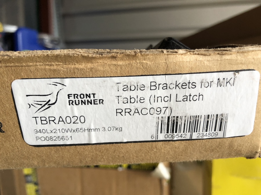 BRAND NEW, never used, still in the box, Front Runner Table Brackets (to slide table or other flat item under rack).