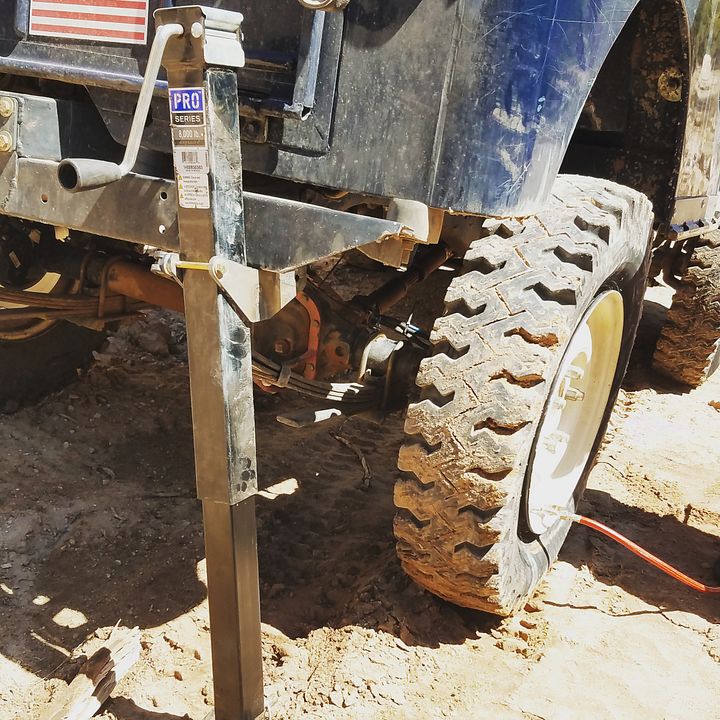 This concept started as a campfire discussion with a few friends after talking through the pluses and minuses between a traditional farm jack that moves pin to pin (like a Hi-LIft) and some of the newer offerings like the ARB hydraulic jack. After messing around with the concept for a few months, changing the nose design a few times, and doing some testing on my own vehicles; I decided to offer a laser cut kit. This kit is a DIY U-weld kit that uses an affordable weld-on side wind trailer jack. The unit pictured is a 5k lift ( 8k hold ) rated unit from Reese (400850383 Pro Series Square Jack)
