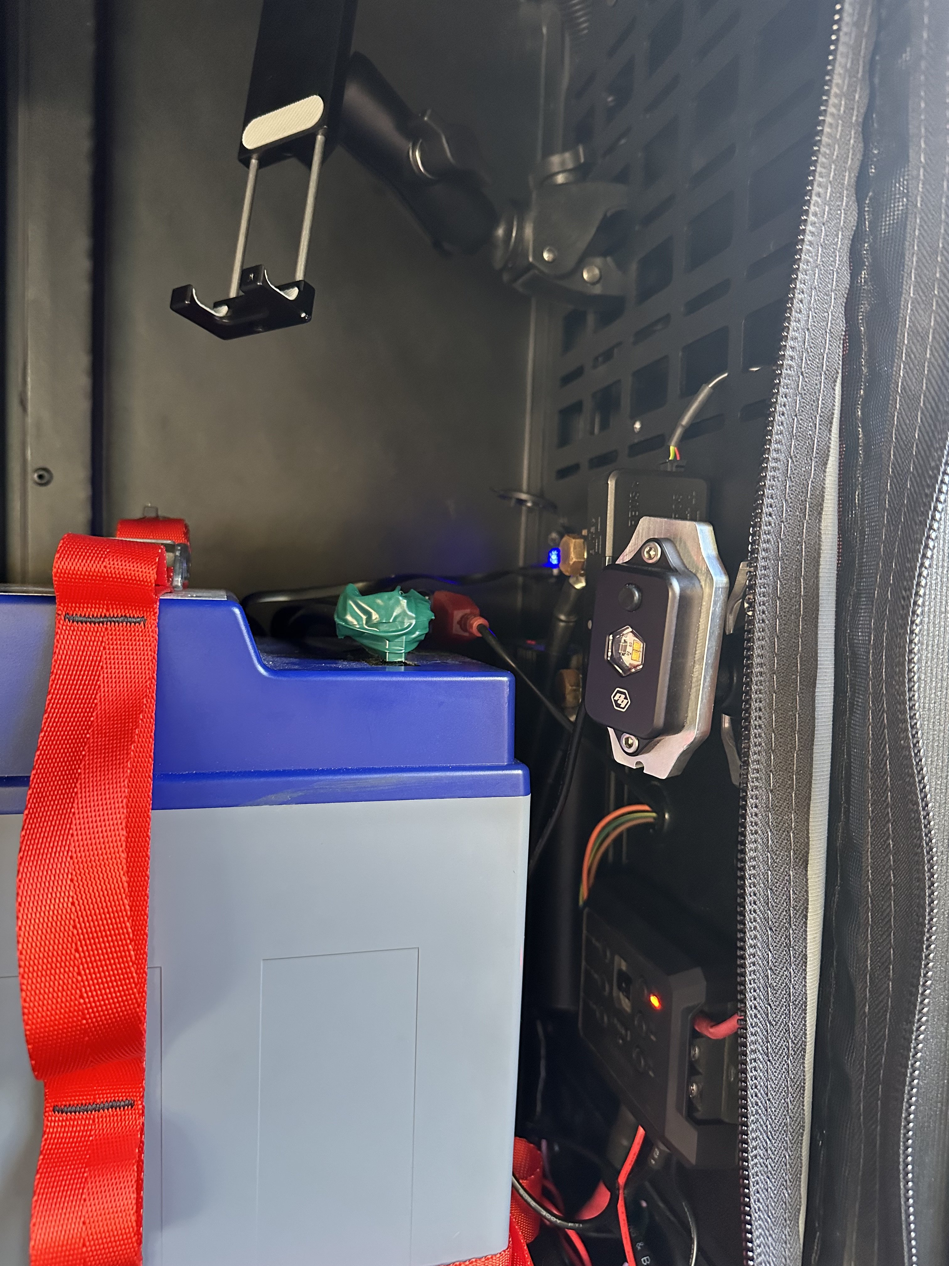 -Baja Designs dome light switched white light near battery and red dome light under propane tank. 813 Fab for the rear dome light and extrusion overland with Ram swivel mount for interior dome light.